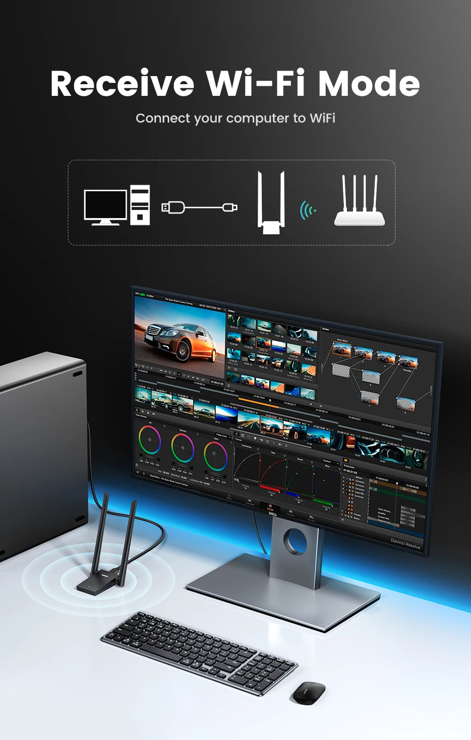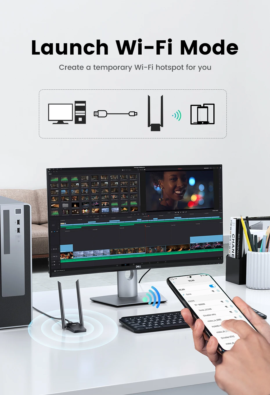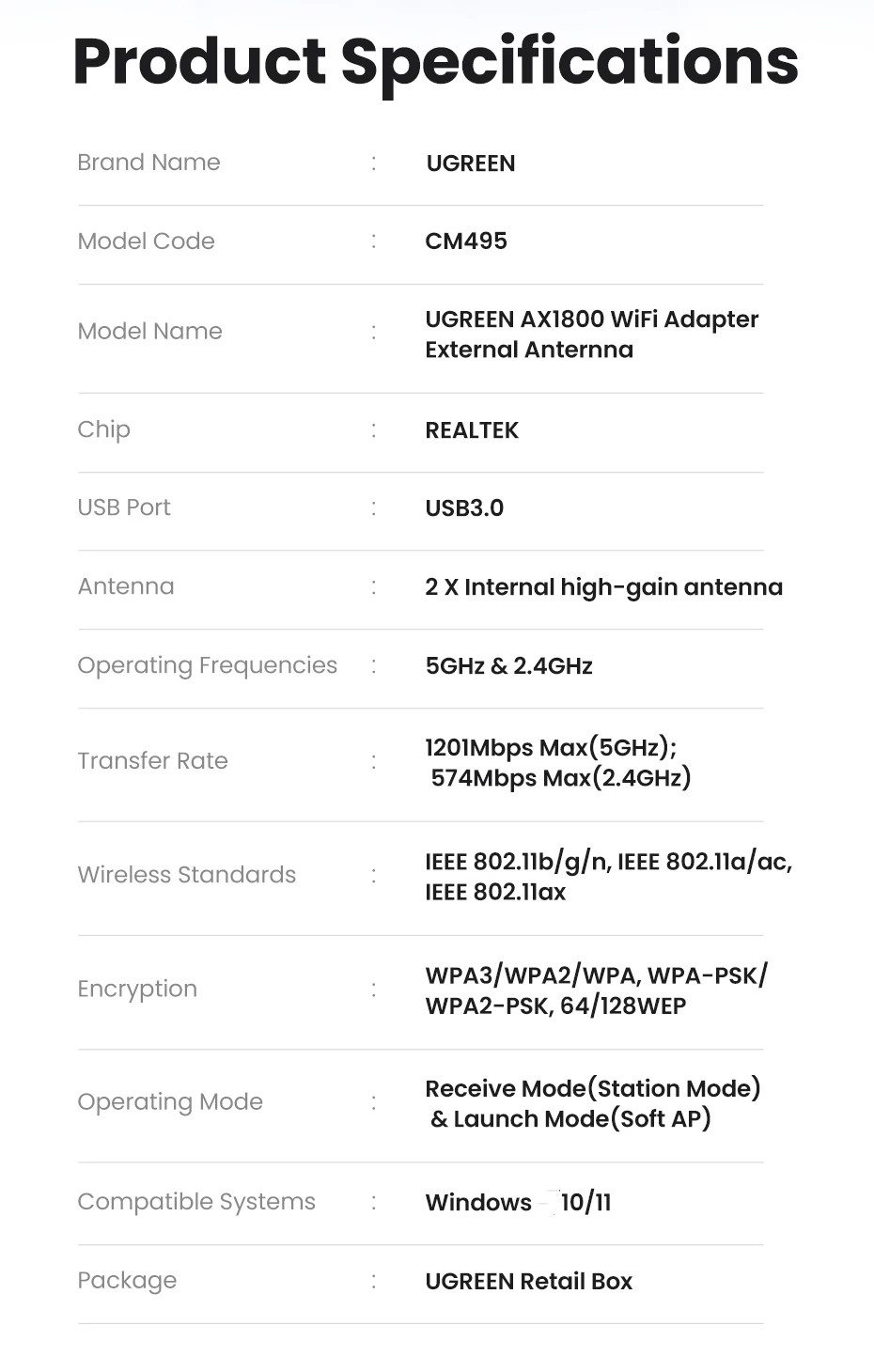 Comprar UGREEN-adaptador WiFi AX1800 para PC y ordenador portátil, dispositivo con antena USB 3,0, 5G y 2,4G, receptor de red Ethernet