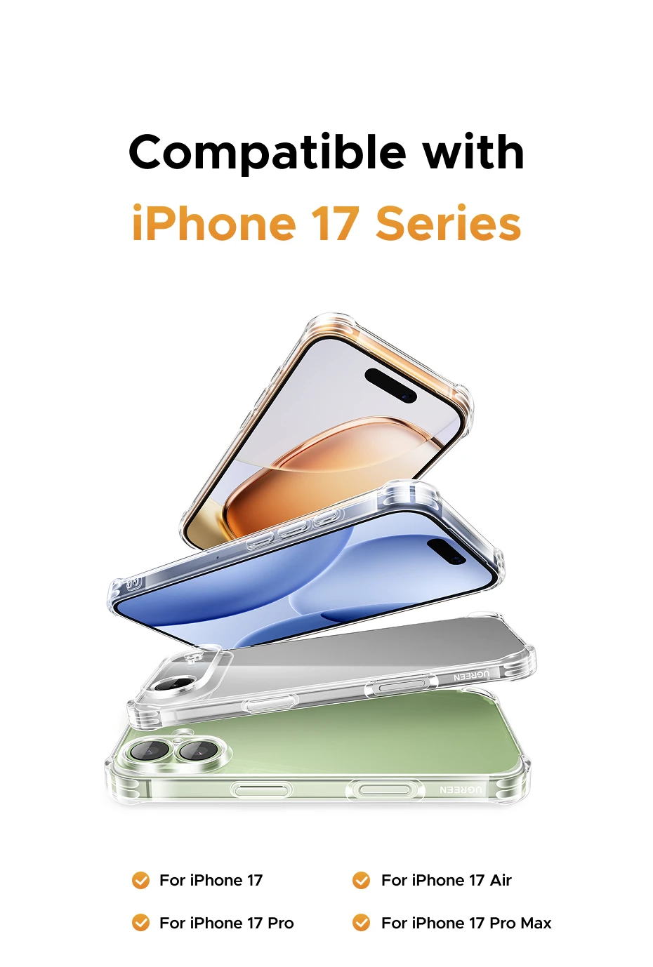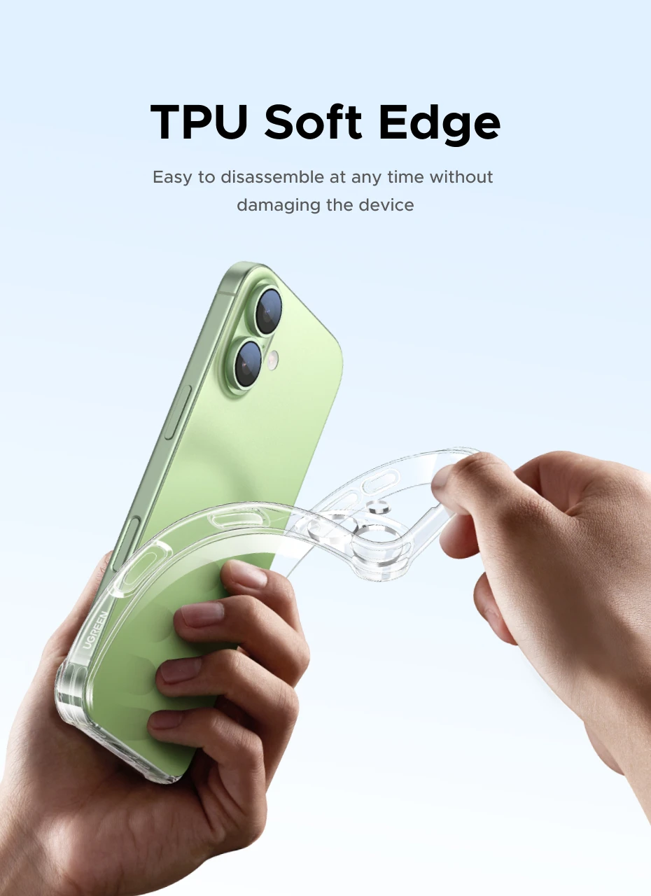 La funda Airbag UGREEN para iPhone 17 Pro Max es una excelente opción gracias a su diseño perfecto, elegante y claro que resalta el teléfono de manera impecable. Se adapta al dispositivo con precisión y ofrece una protección confiable sin agregar volumen adicional. El estuche se siente premium, seguro y elegante, lo que lo convierte en un accesorio altamente recomendado.