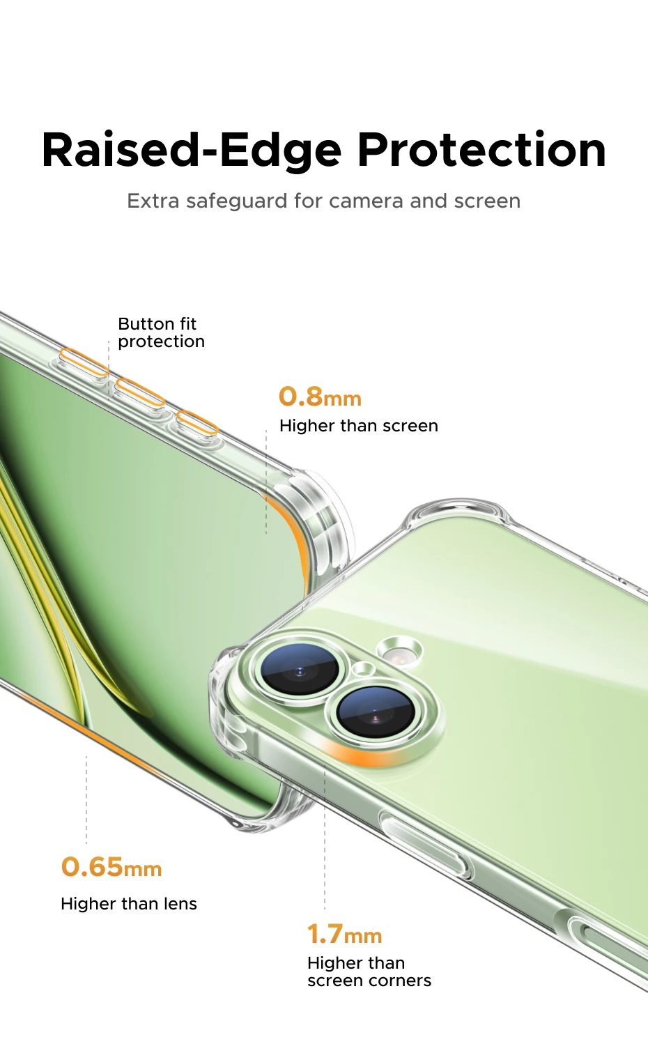 【La parte posterior】adopta un panel posterior rígido compuesto, que es más resistente al amarilleo que la funda de material TPU 100% puro.