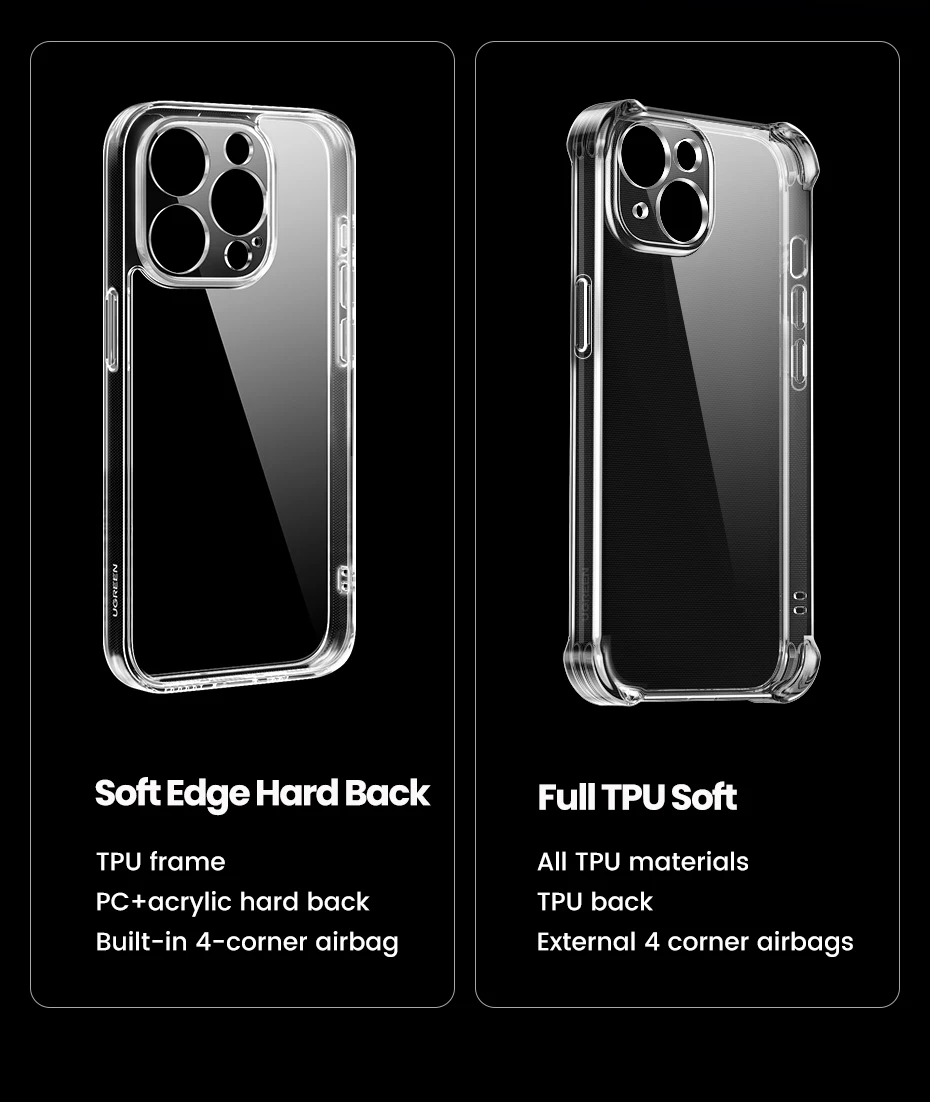 La versión mejorada [Soft Edge Hard Back] es una funda trasera rígida de lados suaves con bolsas de aire incorporadas, mientras que la funda para teléfono móvil es adecuada para [