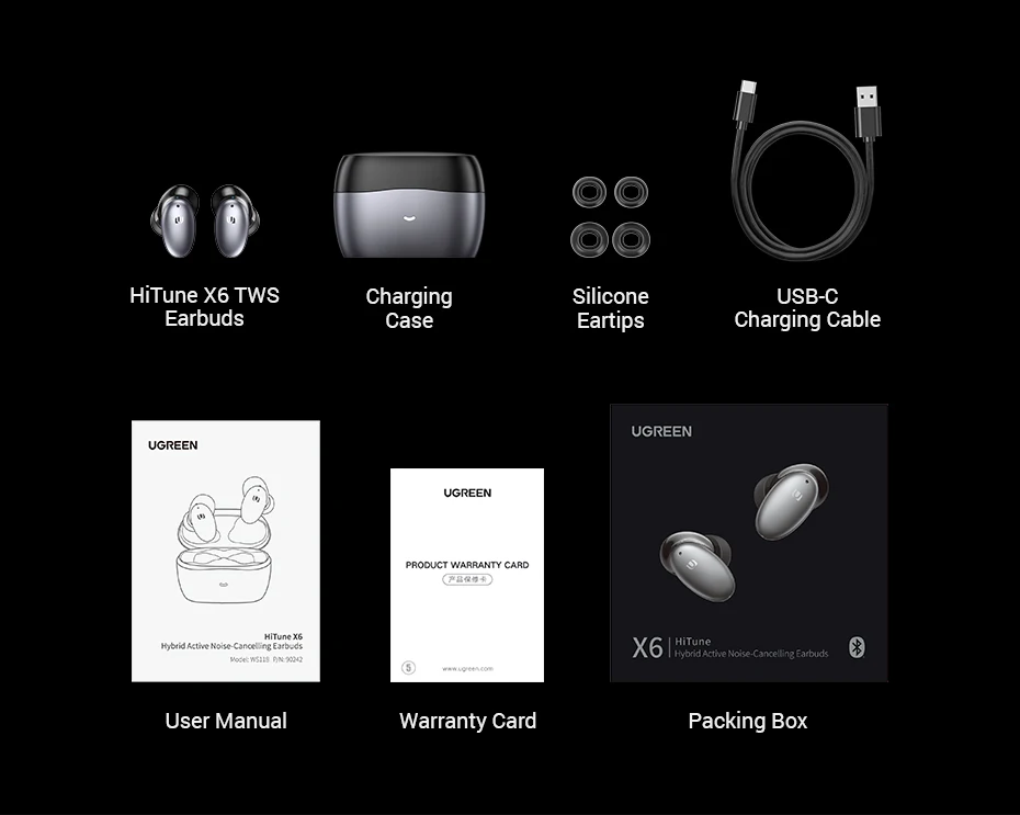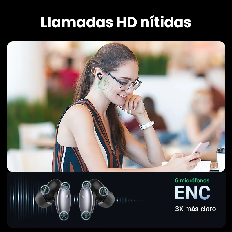 Comprar Ugreen-auriculares inalámbricos HiTune X6, dispositivo de audio con Bluetooth, TWS, ANC, 35dB, híbrido, cancelación activa de ruido, 50ms