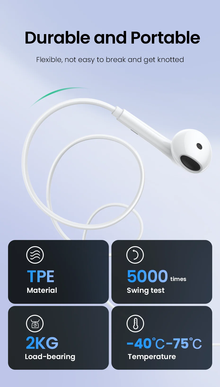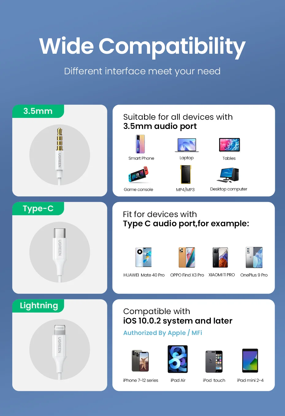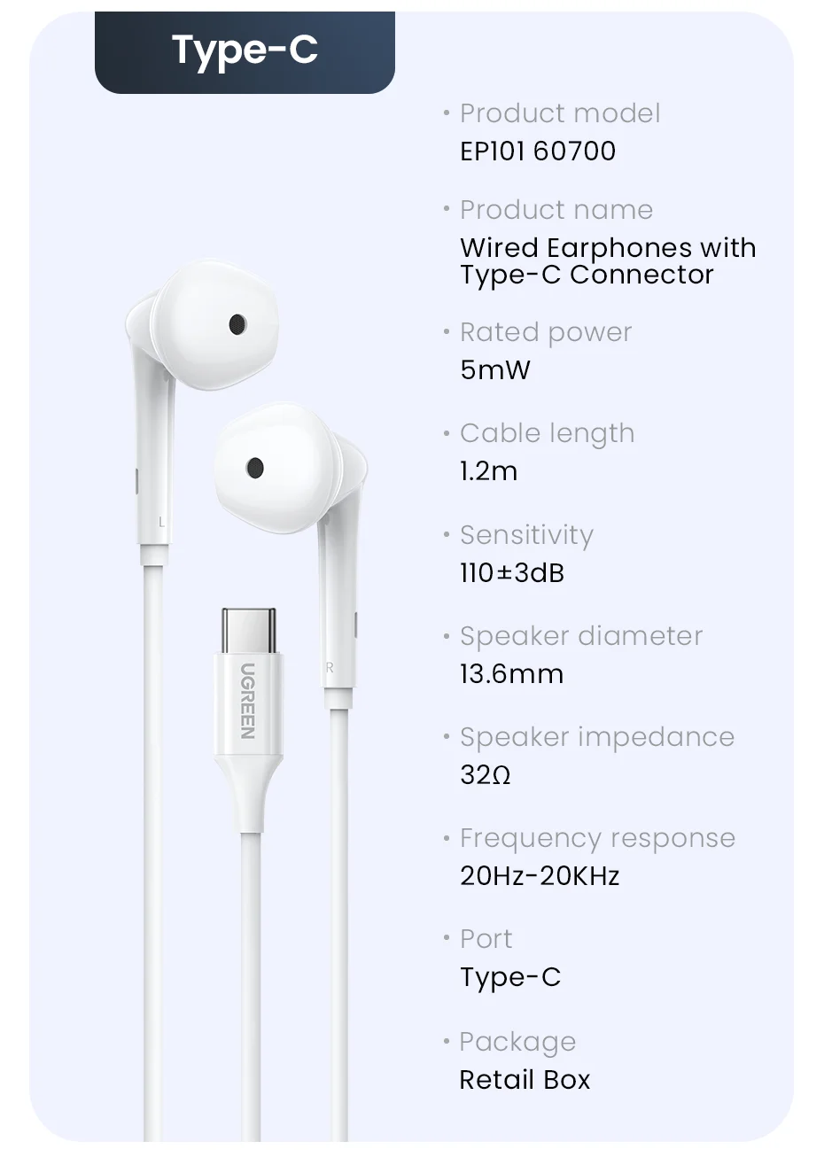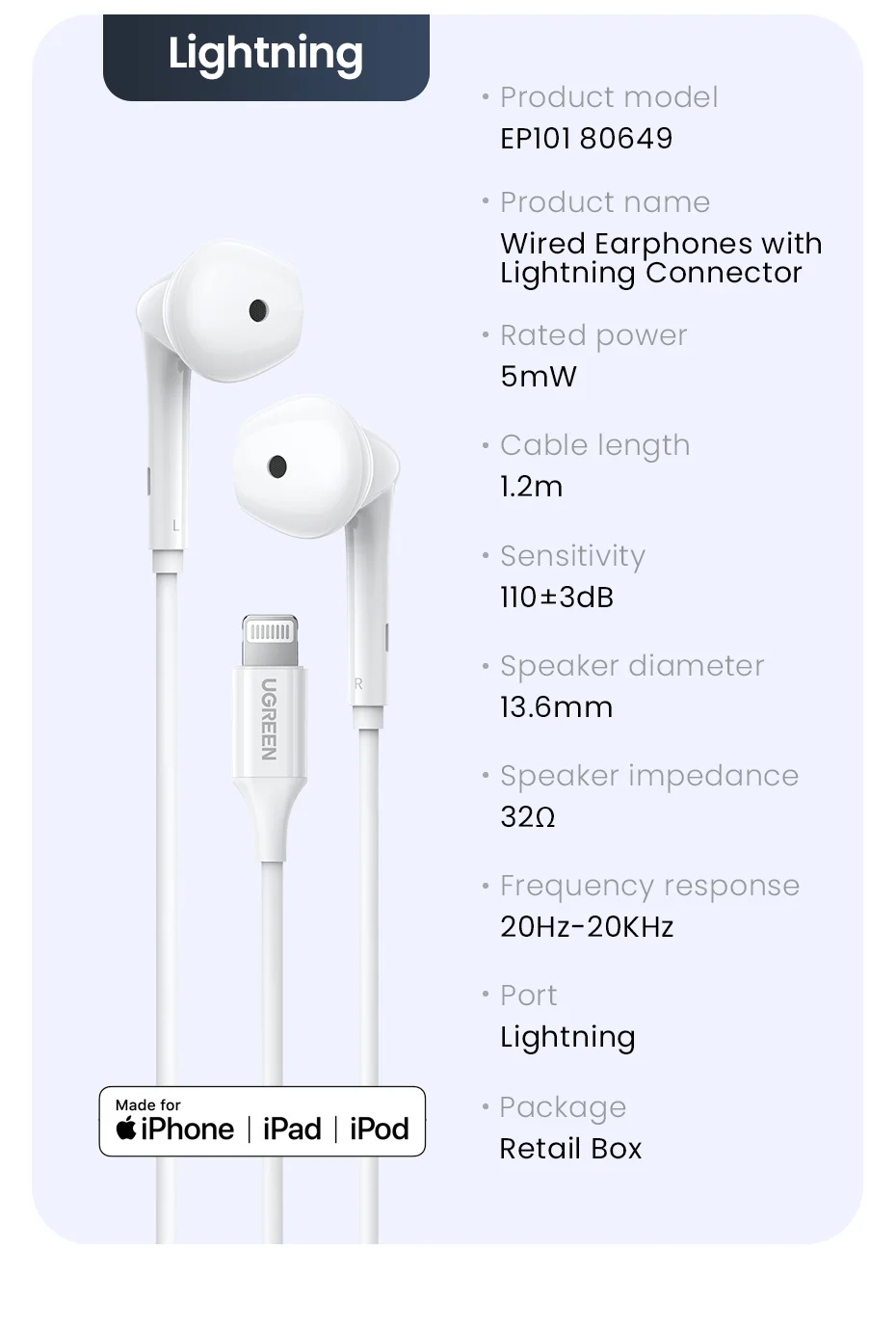 Comprar UGREEN-auriculares USB tipo C con cable y micrófono, audífonos estéreo de alta fidelidad con cancelación de ruido, certificado MFi, 3,5mm