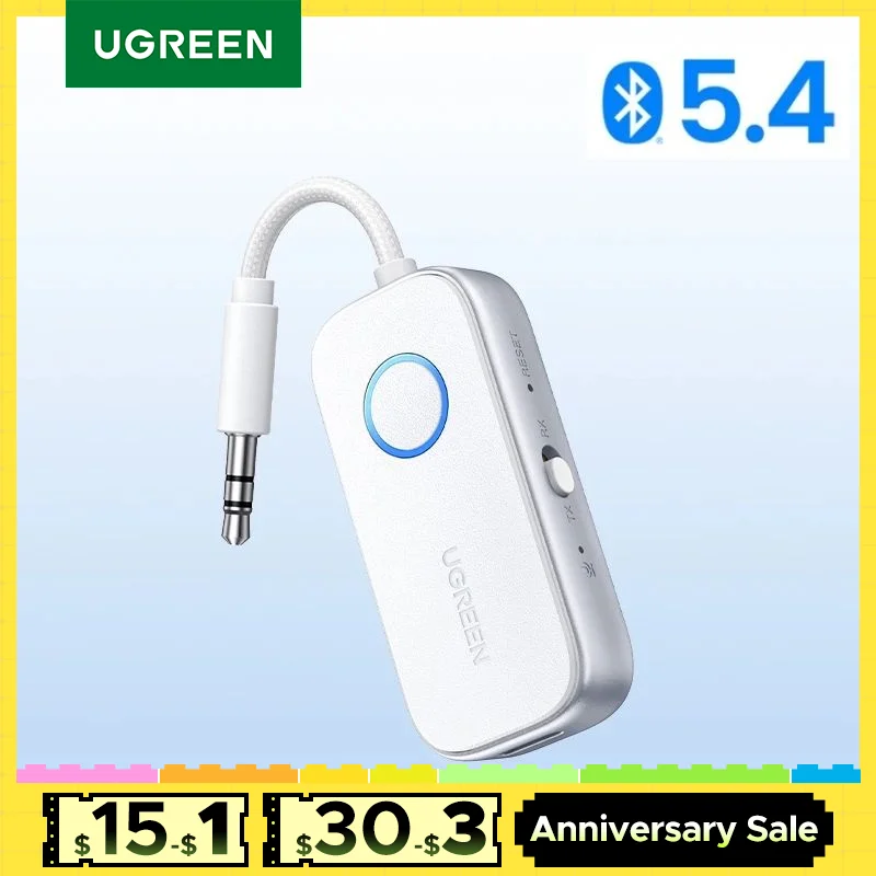 Comprar UGREEN Avión Adaptador Bluetooth 5.4 Conector AUX de 3,5 mm Receptor transmisor de audio inalámbrico para aviones, aerolíneas, viajes, TV