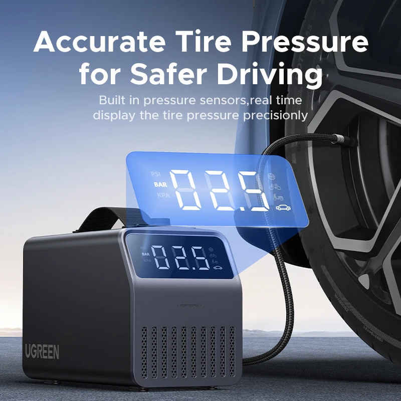 UGREEN Bomba de aire para automóvil de 12 V, inflador de neumáticos automático de 150 PSI, compresor de aire portátil de alta potencia con pantalla grande, bolsa de almacenamiento para automóvil Truk