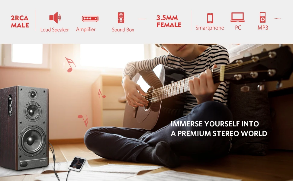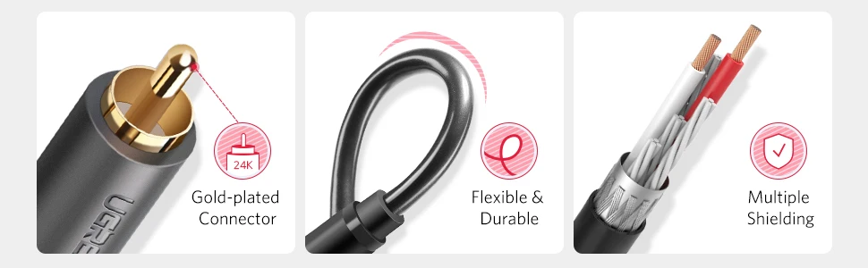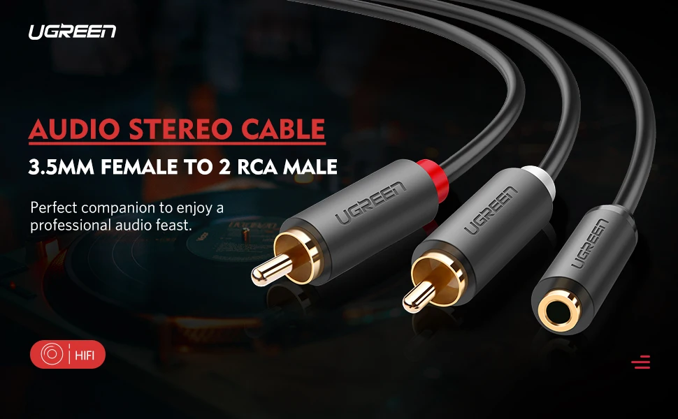 Comprar UGREEN-Cable 2 RCA macho a hembra, adaptador Jack de 3,5mm, Cable auxiliar de Audio para iPhone Edifer Home Theater, DVD, VCD, auriculares