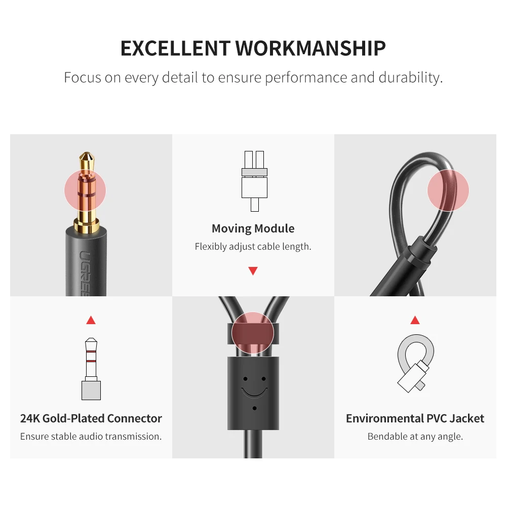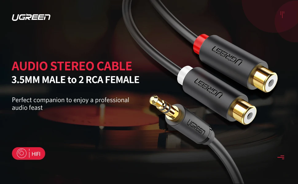 Comprar UGREEN-Cable de Audio estéreo macho a 2 RCA hembra, adaptador auxiliar para altavoz de ordenador, 3,5 MM, 3,5