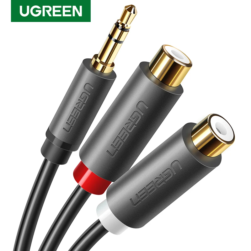 Comprar UGREEN-Cable de Audio estéreo macho a 2 RCA hembra, adaptador auxiliar para altavoz de ordenador, 3,5 MM, 3,5