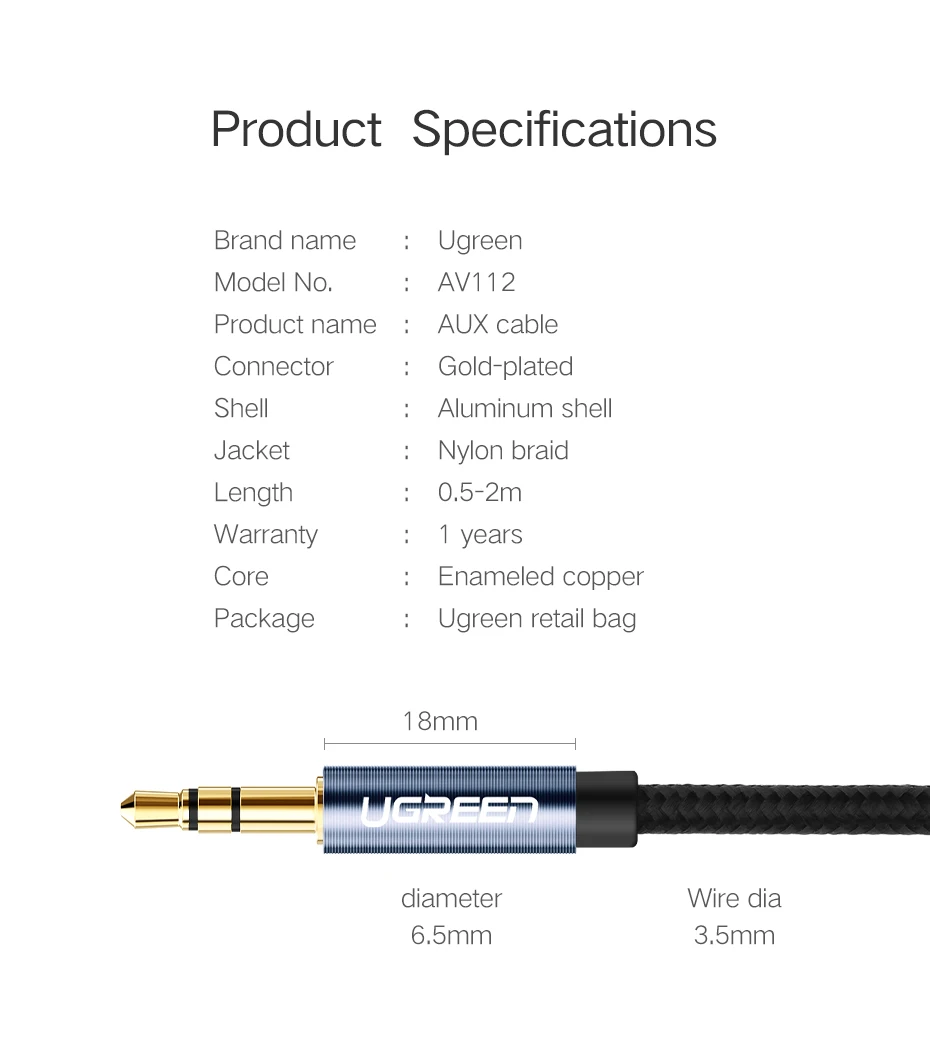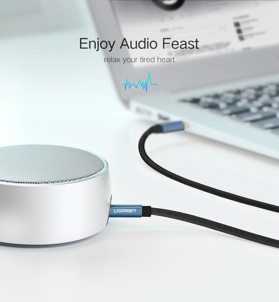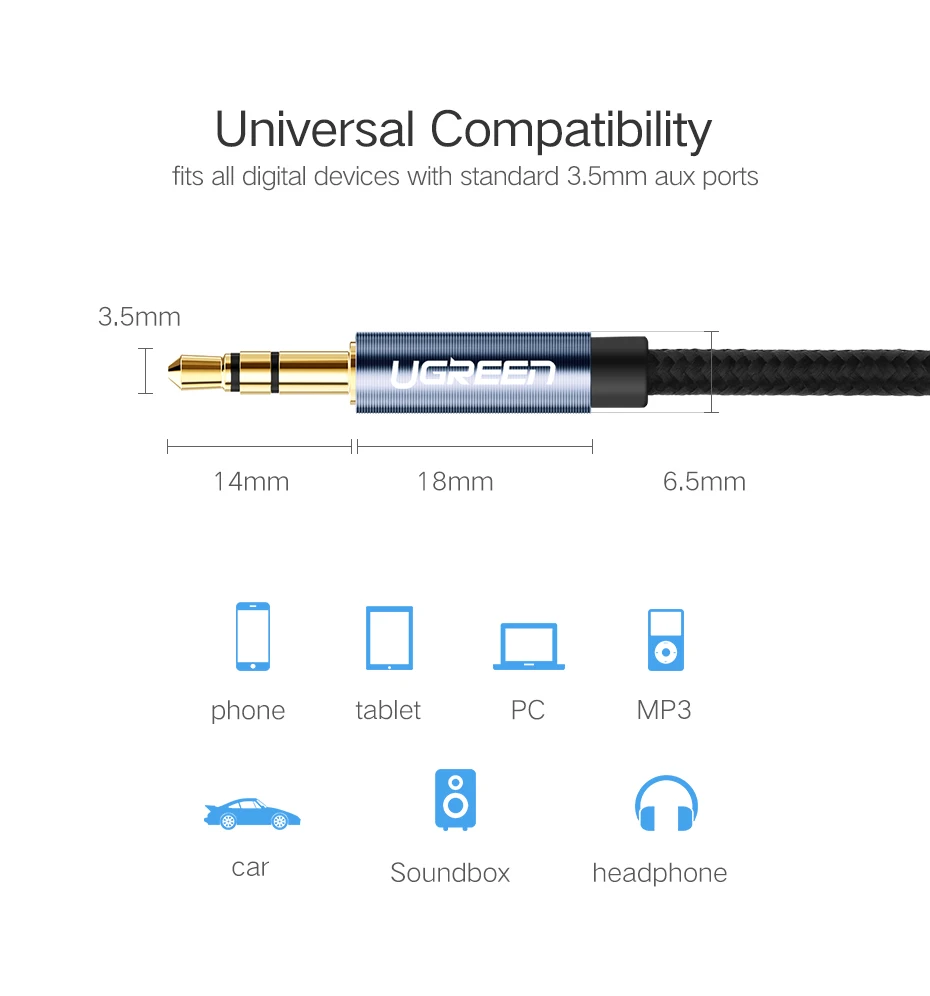 Comprar UGREEN-Cable auxiliar de audio de 3,5mm para iPhone y iPad, Cable trenzado macho a macho para estéreo de casa y coche, 3,5mm, 3,5mm