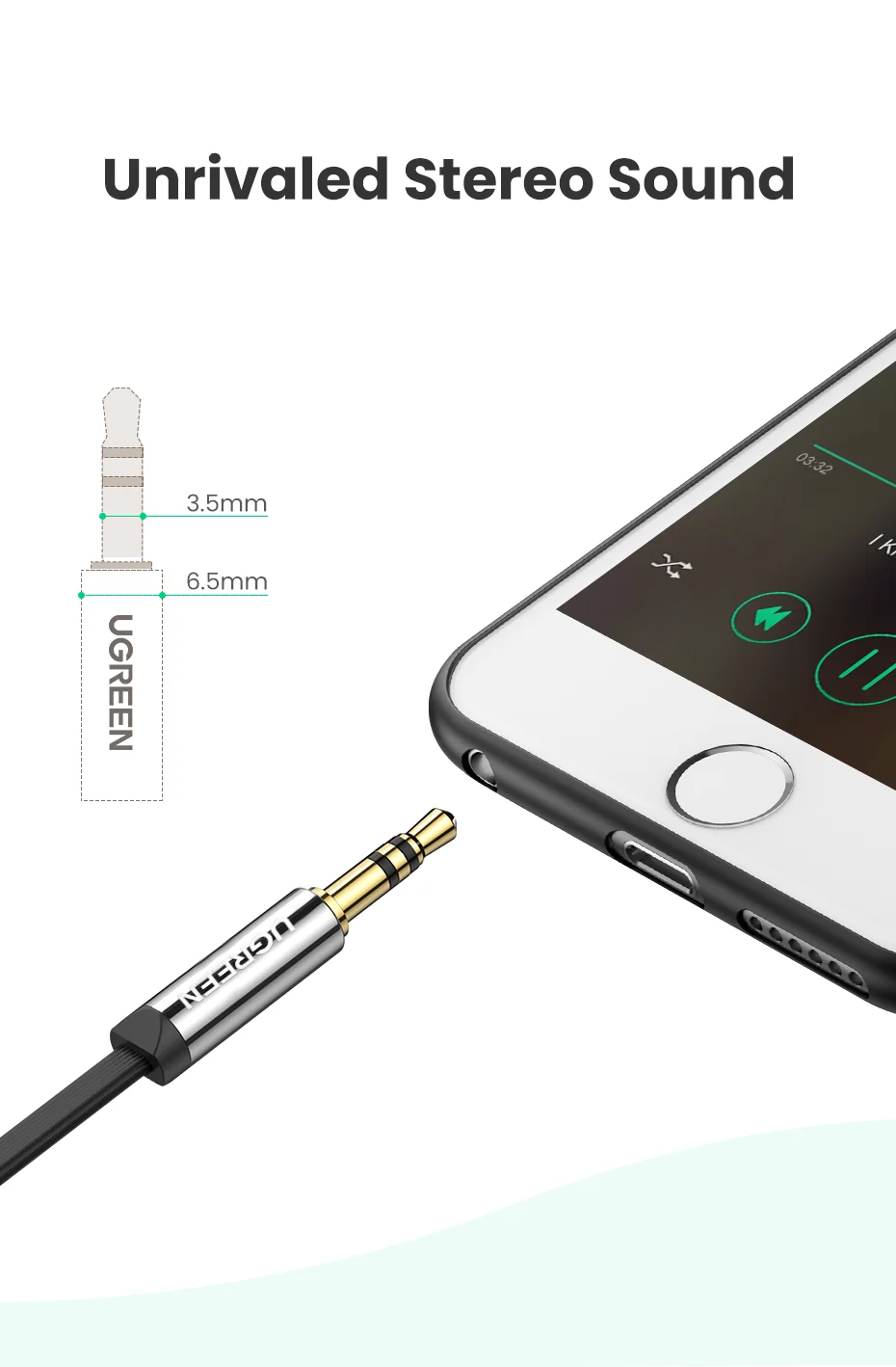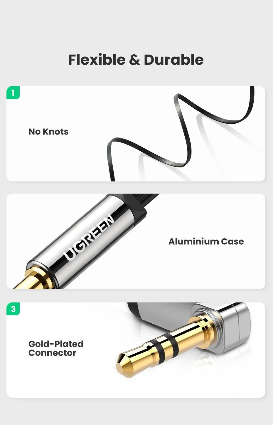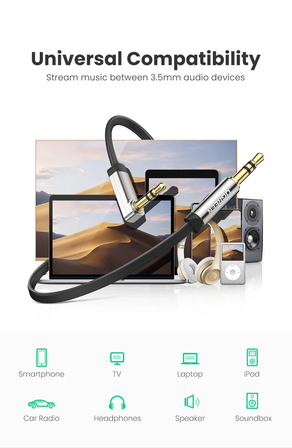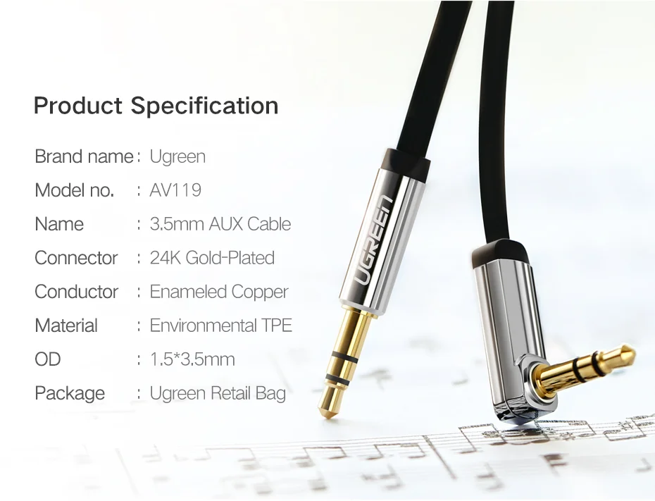 Comprar Ugreen-Cable auxiliar de Audio estéreo Hi-Fi, conector Jack de 3,5mm, 3,5mm, 90 grados, para reproductor, ordenador, auriculares, portátil, Coche