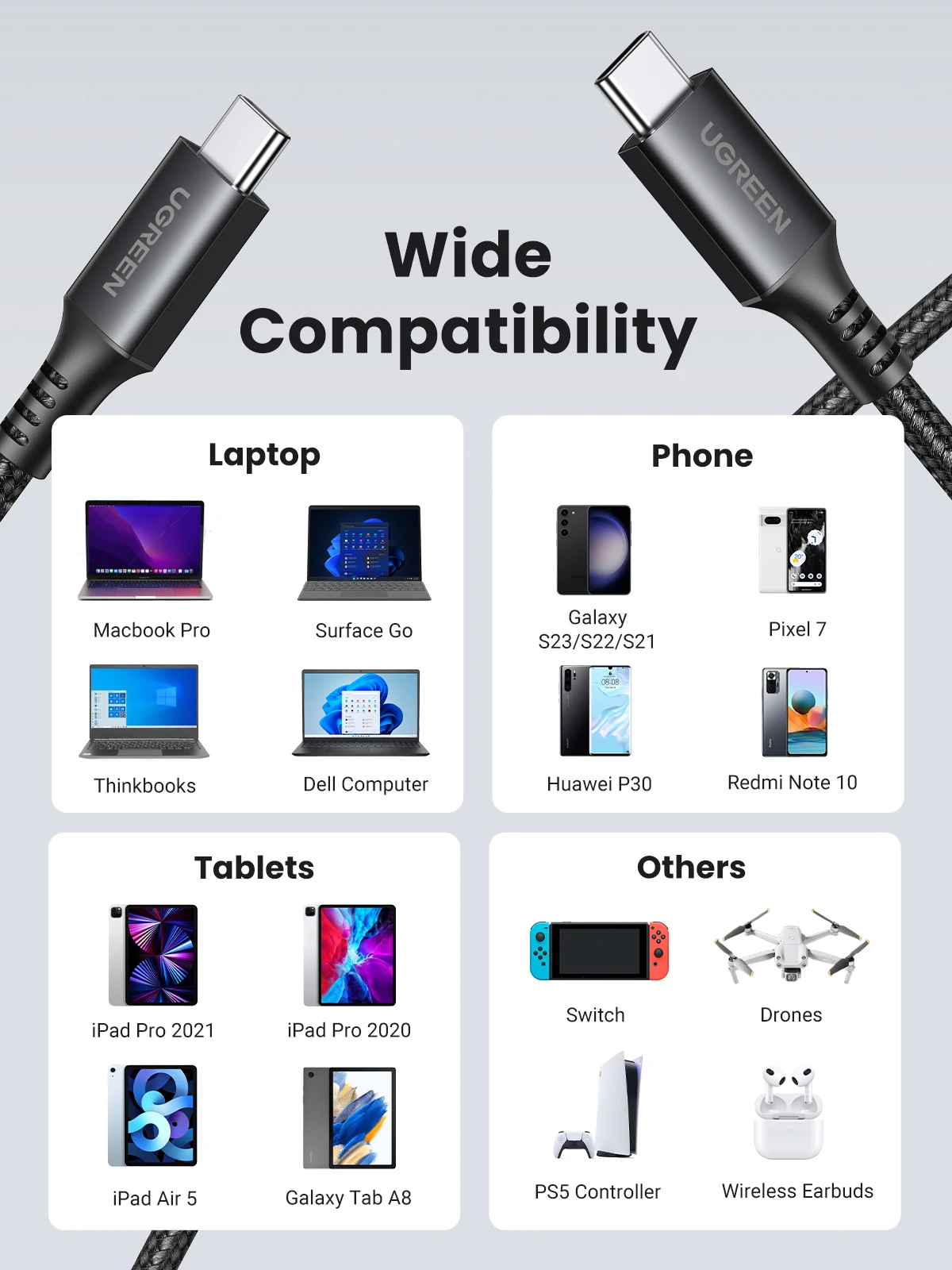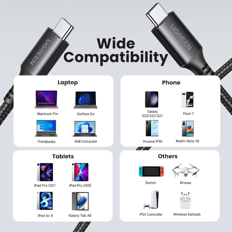 Comprar UGREEN-Cable de carga rápida USB tipo C para Macbook, iPad, Samsung, Xiaomi, 60W, 100W, 100W