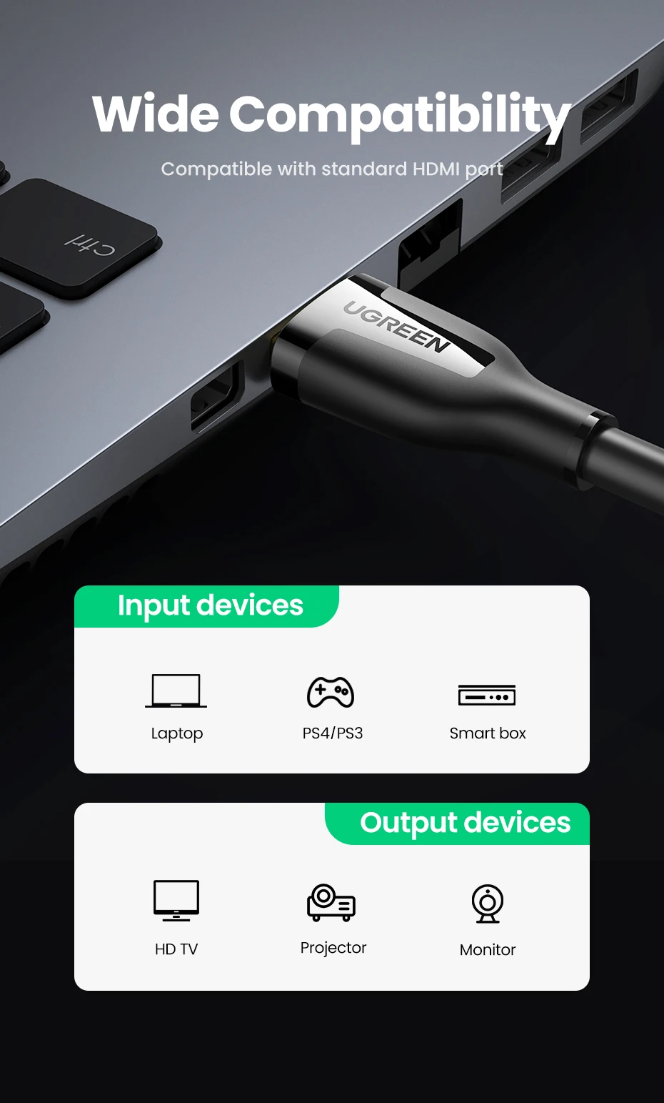 Comprar UGREEN-Cable Compatible con HDMI 2,0 para Apple TV PS4, Cable de caja de interruptor divisor, Cable de Audio y vídeo de 60Hz, Compatible con HDMI 4K