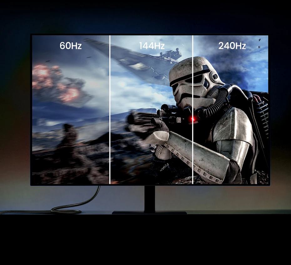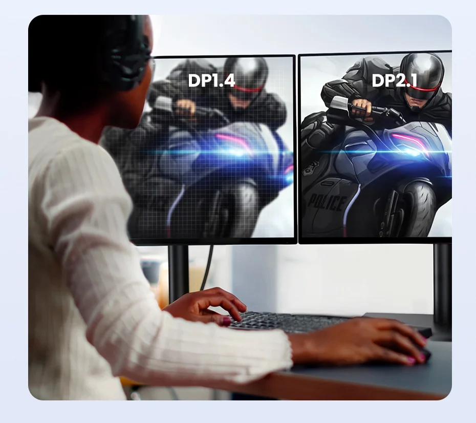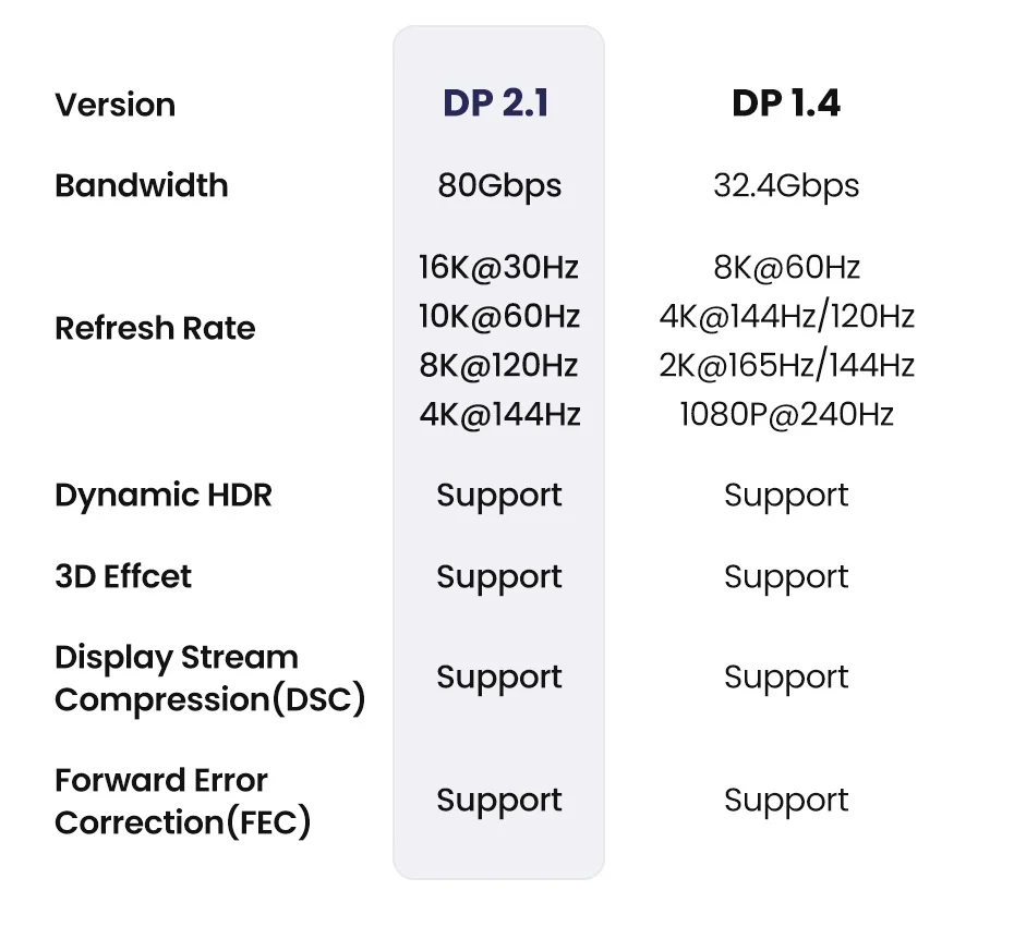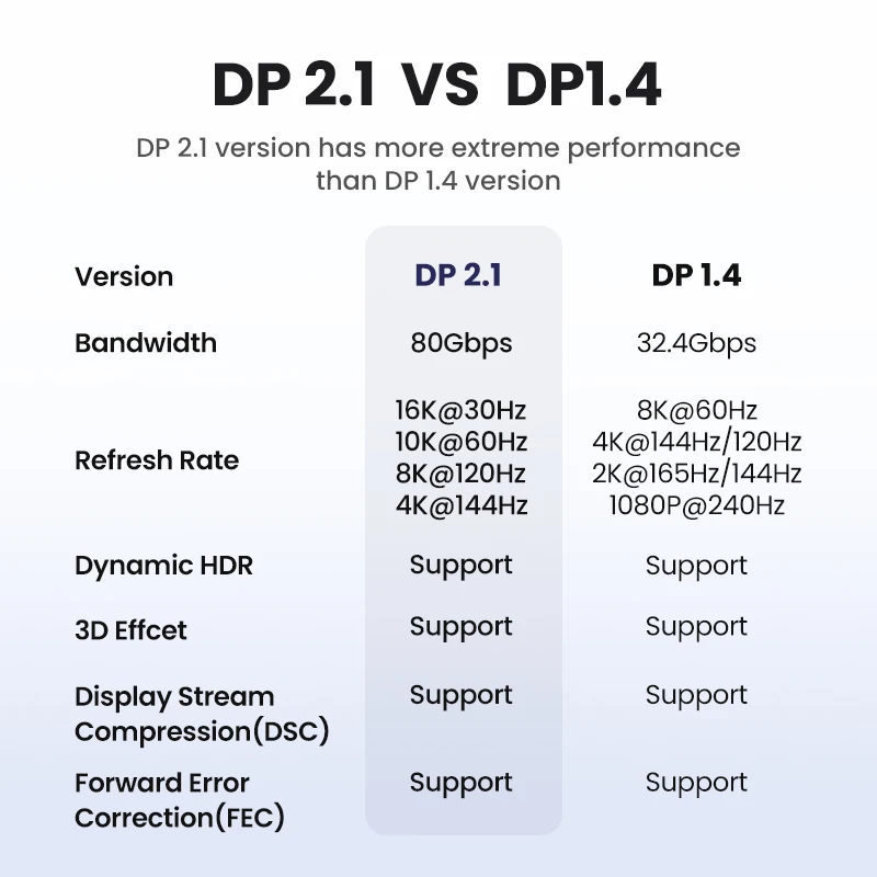 La función Displayport 2.1 de 16K proporciona un ancho de banda de 80 Gbps.Transmisión estable y de alta velocidad sin pérdida de señal.