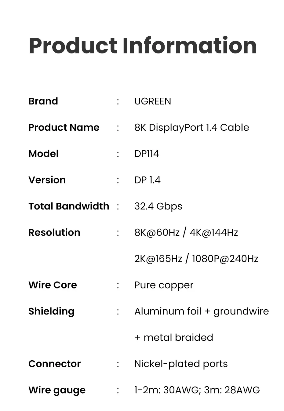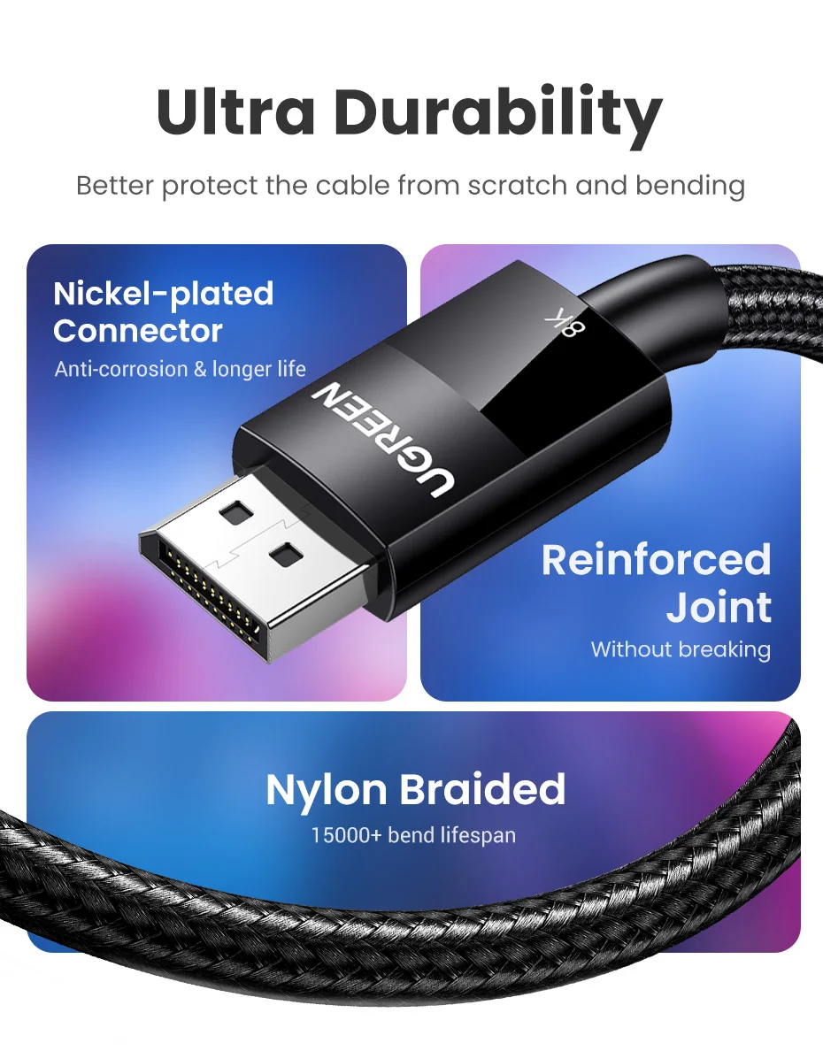 Comprar UGREEN-Cable DisplayPort 8K para TV, accesorio para televisor Xiaomi 4K, 144Hz, DP 1,4, 32,4 Gbps, PUBG, juegos, PC, ordenador, Monitor, proyector