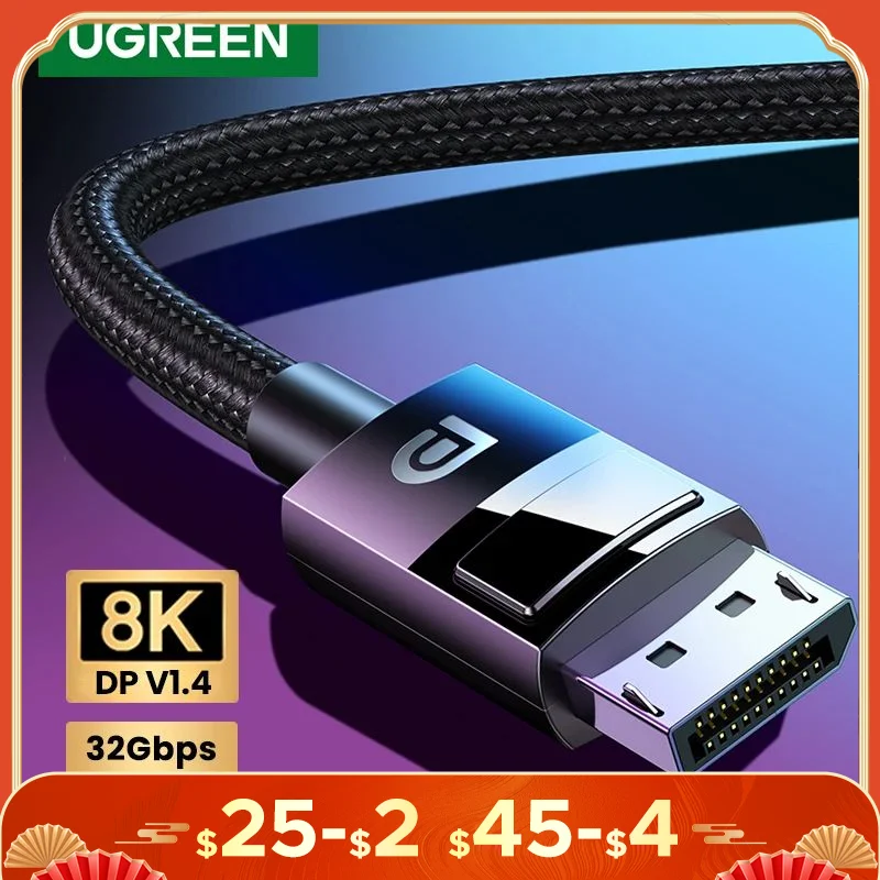 Comprar UGREEN-Cable DisplayPort 8K para TV, accesorio para televisor Xiaomi 4K, 144Hz, DP 1,4, 32,4 Gbps, PUBG, juegos, PC, ordenador, Monitor, proyector