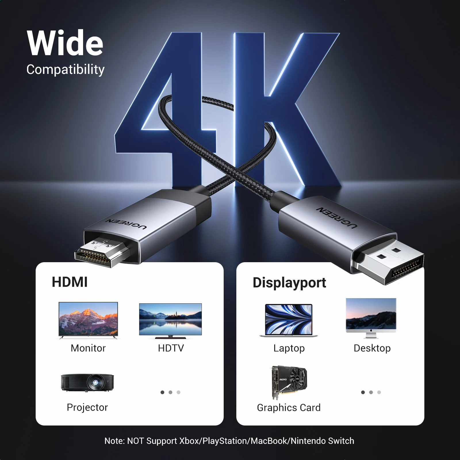 Comprar UGREEN-Cable DisplayPort a HDMI, 4K, 60Hz, DP a HDMI, adaptador macho a HDMI para proyector HDTV