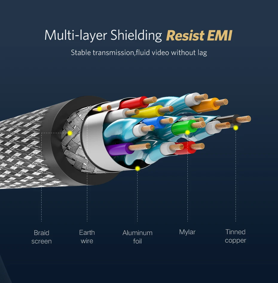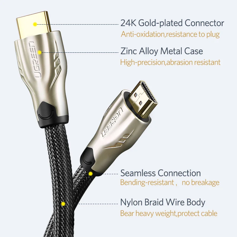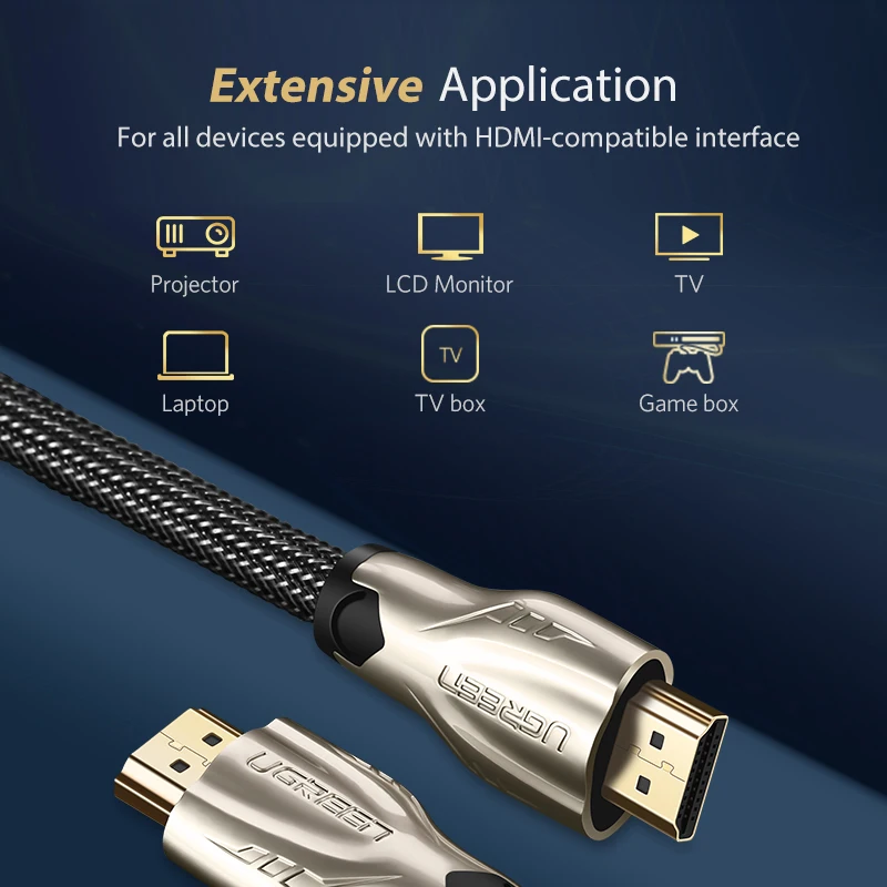 Facilita enormemente la conexión entre componentes principales como televisores 4K y consolas de juegos/Smart box, por ejemplo: realizando la conexión entre Xiaomi Mi Box y televisores 4K.Ugreen HDMI El cable 2,0 no solo cumple con los requisitos básicos de resolución 4K/60Hz, sino que también admite HDR, ARC y otras funciones