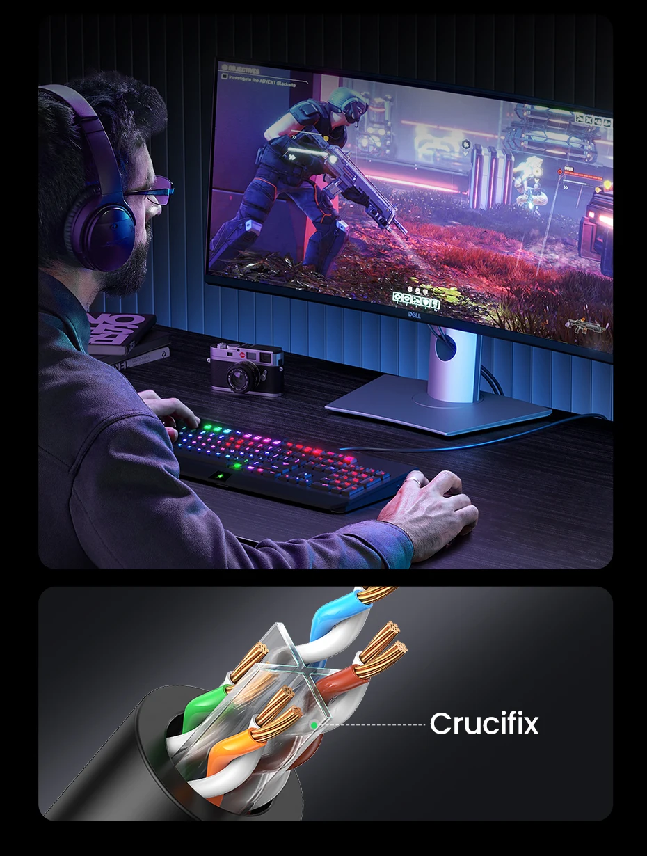 Every 8 cores are twisted into 1 strand, total 4 pairs. Each pair is isolated by the cross skeleton to reduce mutual signal interference. Reduce the network packet loss rate, network speed is more stable.