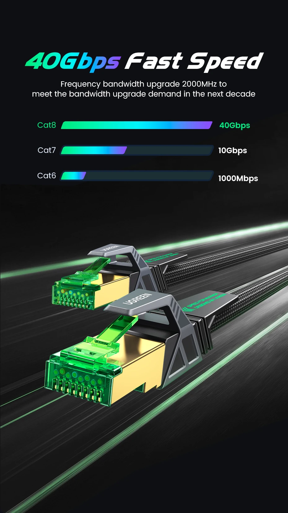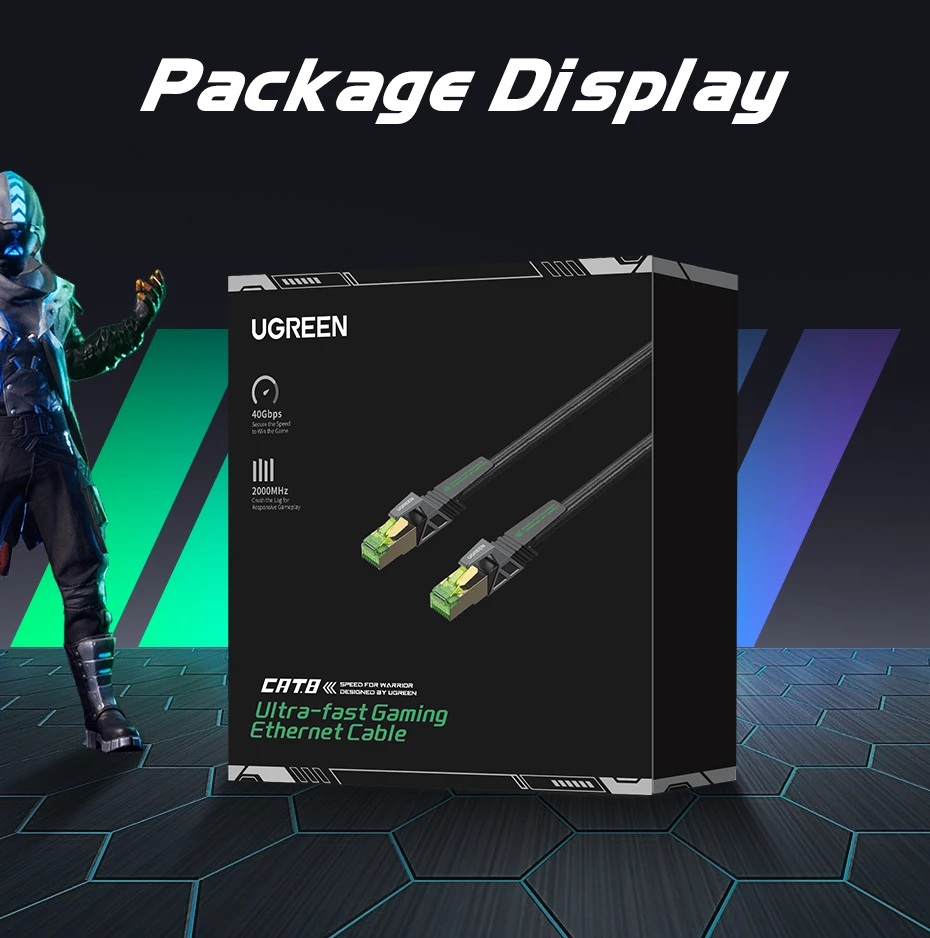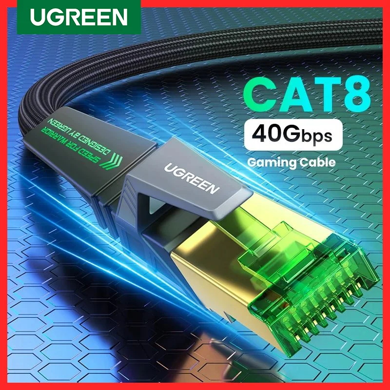 Comprar UGREEN-Cable Ethernet CAT8 para juegos, trenzado de Internet Cable Lan de algodón para PC, portátiles, enrutador PS 4, RJ45, 40Gbps, 2000MHz, CAT 8