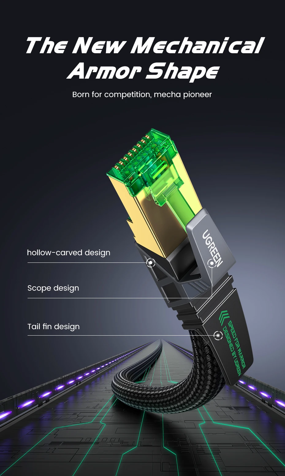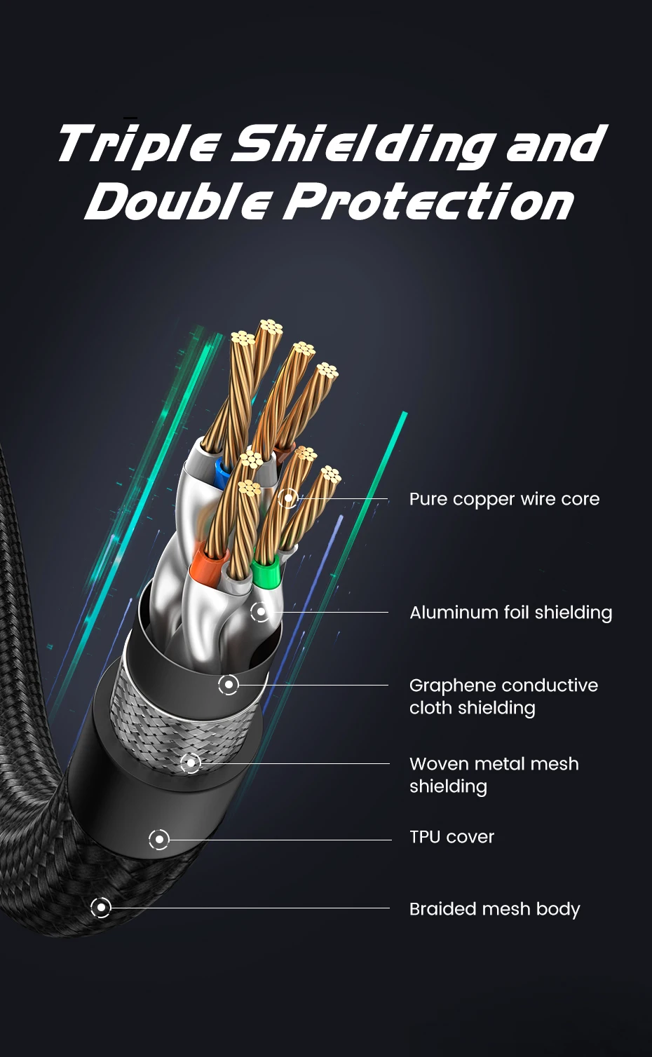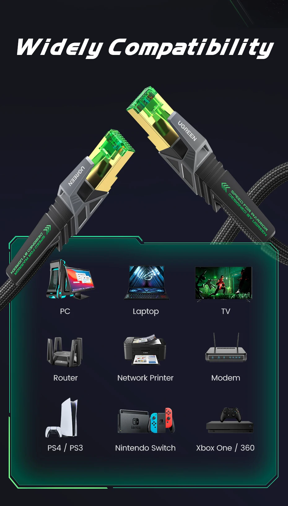 Comprar UGREEN-Cable Ethernet CAT8 para juegos, trenzado de Internet Cable Lan de algodón para PC, portátiles, enrutador PS 4, RJ45, 40Gbps, 2000MHz, CAT 8