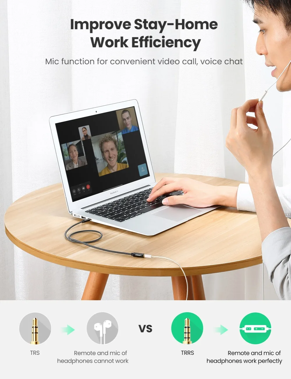 Comprar UGREEN-Cable de extensión macho a hembra de 3,5mm, adaptador de Audio estéreo con micrófono, Compatible con iPhone, iPad, teléfonos inteligentes y tabletas