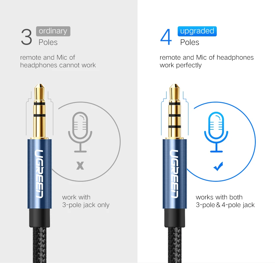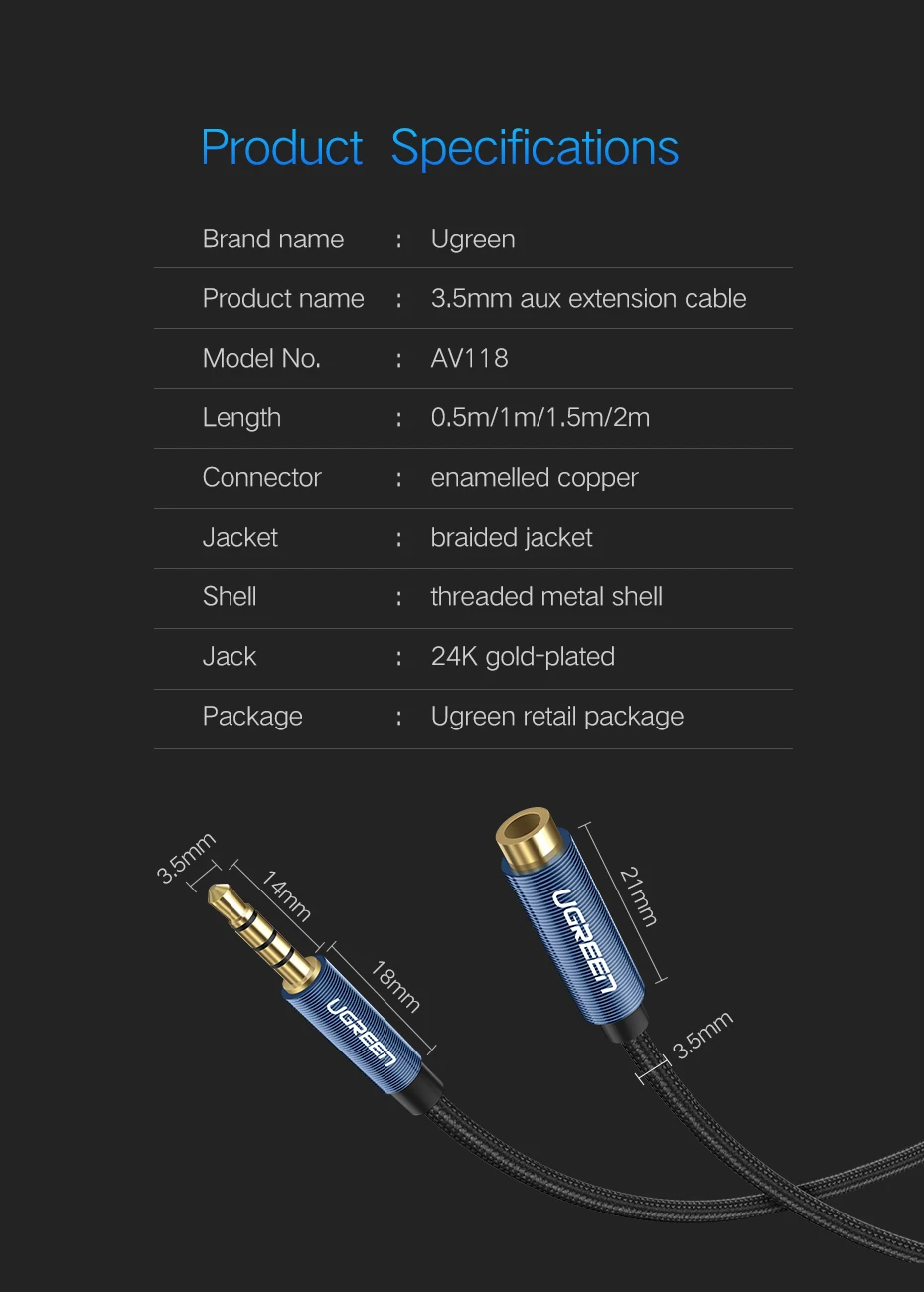 Comprar UGREEN-Cable de extensión macho a hembra para auriculares, adaptador de Audio estéreo 3,5 con conector de 3,5mm, Compatible con PC