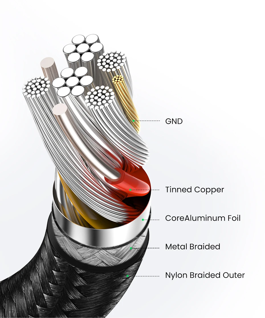 Construido con múltiples capas de blindaje para minimizar la interferencia y resistente a la corrosión para una claridad de señal óptima, prolongando efectivamente la vida útil del cable.