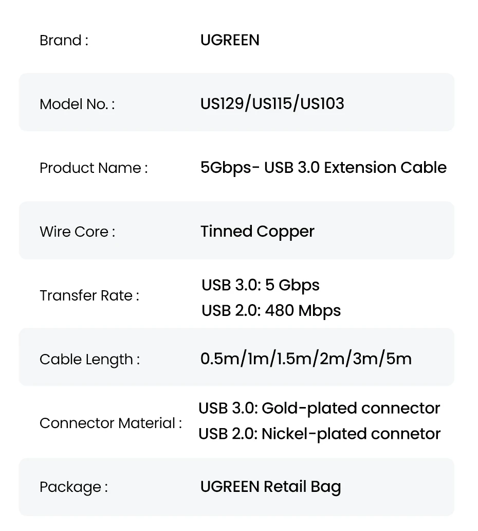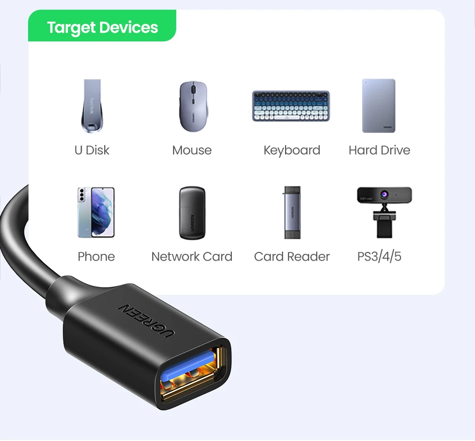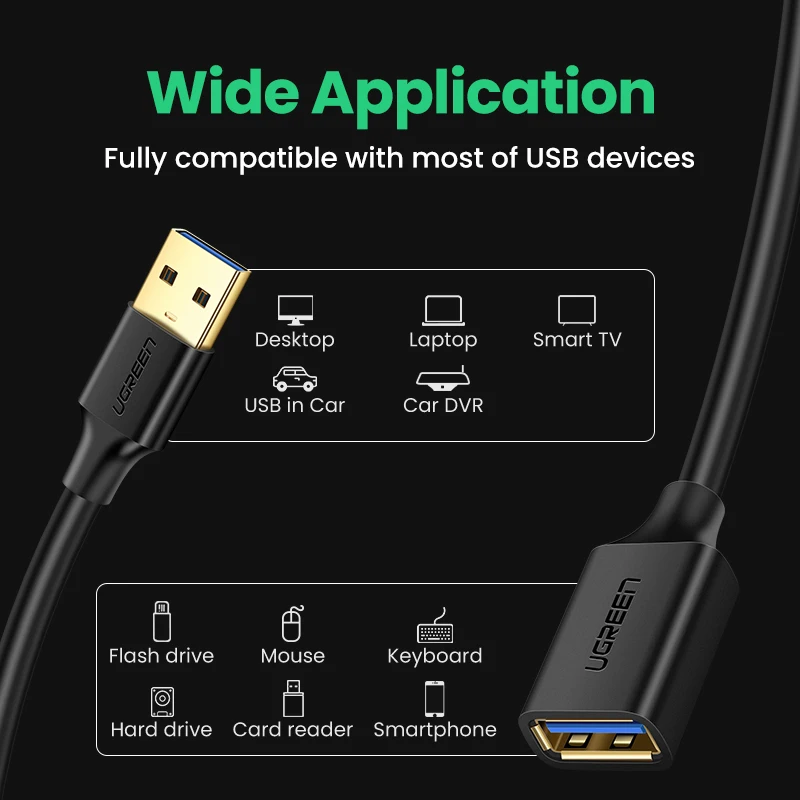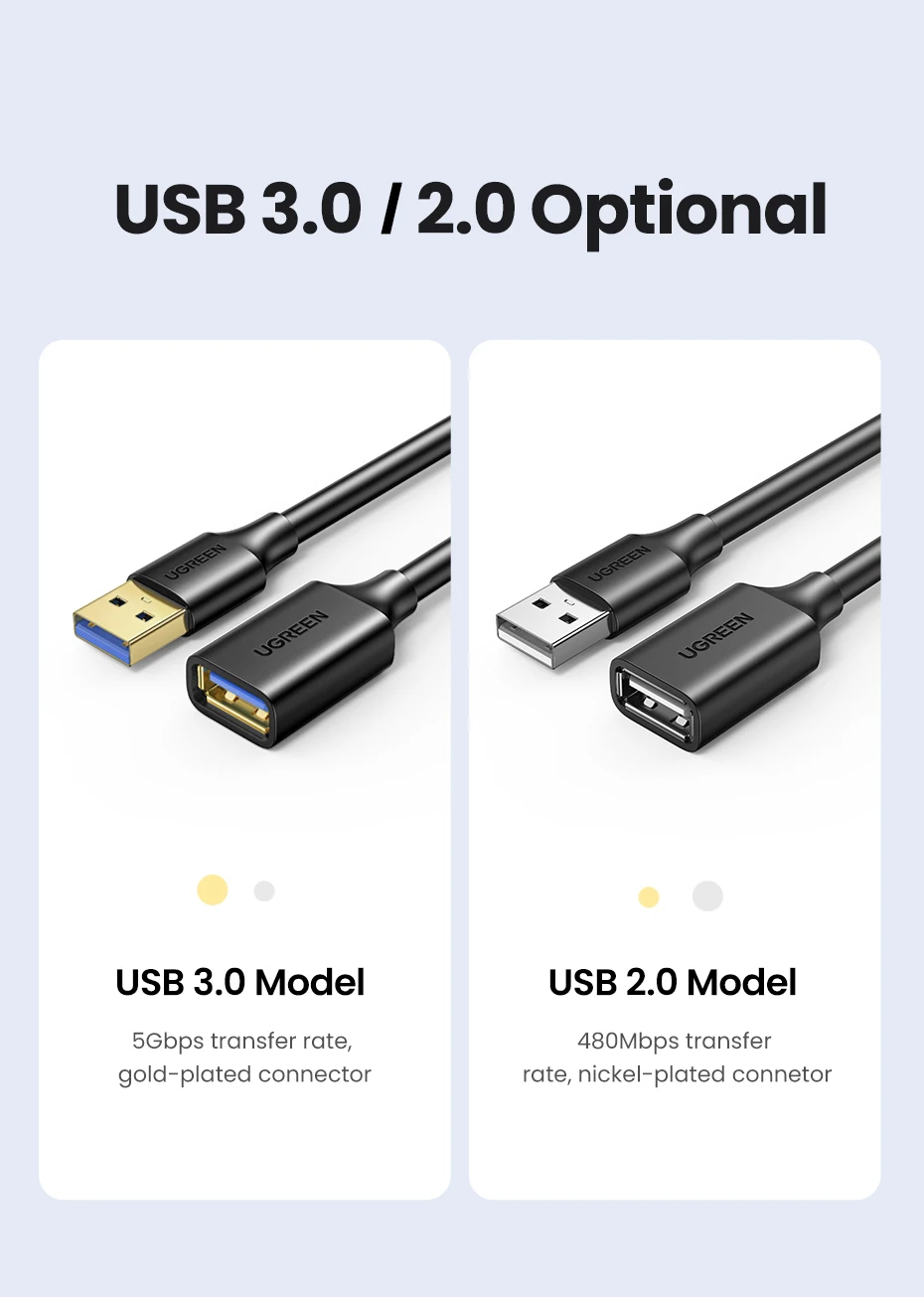 Comprar UGREEN-Cable de extensión USB 3,0, Mini Cable de velocidad rápida para ordenador portátil inteligente, PC, TV, Xbox, One, SSD, USB 3,0, 2,0