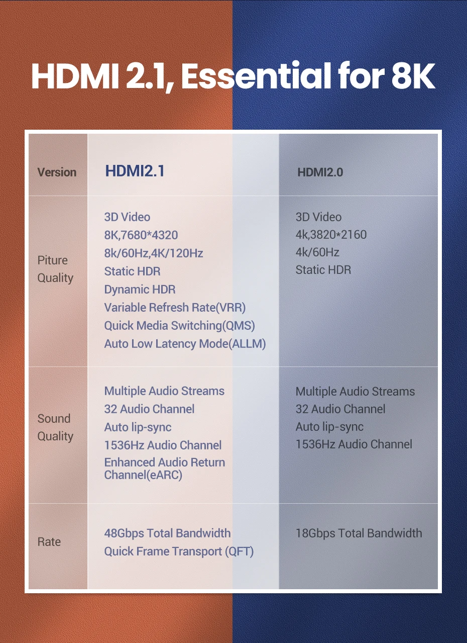 HDMI Los cables 2,1 son esenciales para TV 8K de ultra alta definición. Satisface toda la demanda de sus altos requisitos, como jugar juegos inmersivos y tener una experiencia de visualización inmersiva, las características de HDMI El cable 2,1 ampliará enormemente su horizonte.