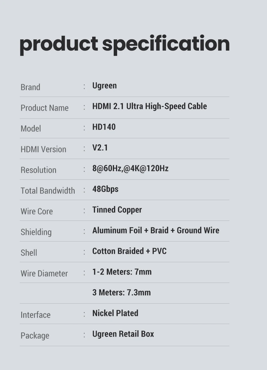 Comprar Ugreen-Cable HDMI 2,1 para Xbox Series X, divisor 8K/60Hz 4K/120Hz, para Xiaomi Mi Box PS5, HDR10 + 48gbps, HDMI 2,1