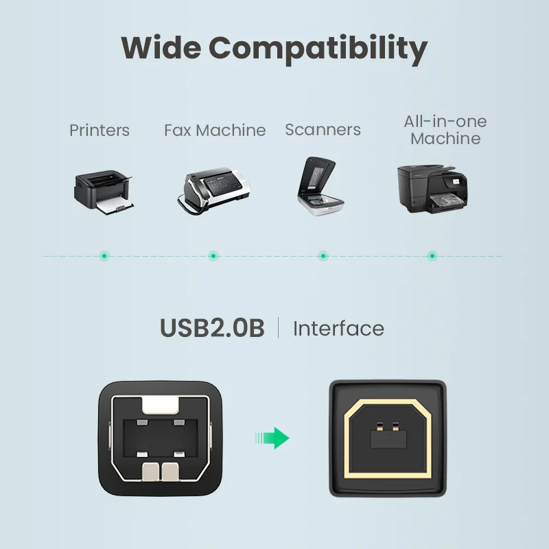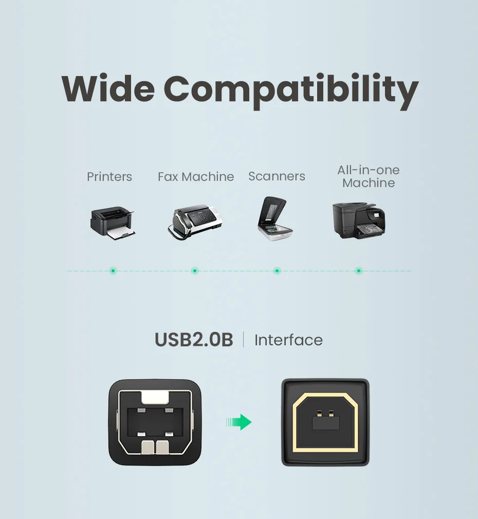 Buen cable para impresora, trenzado cómodo, conectores prácticos y convenientes.