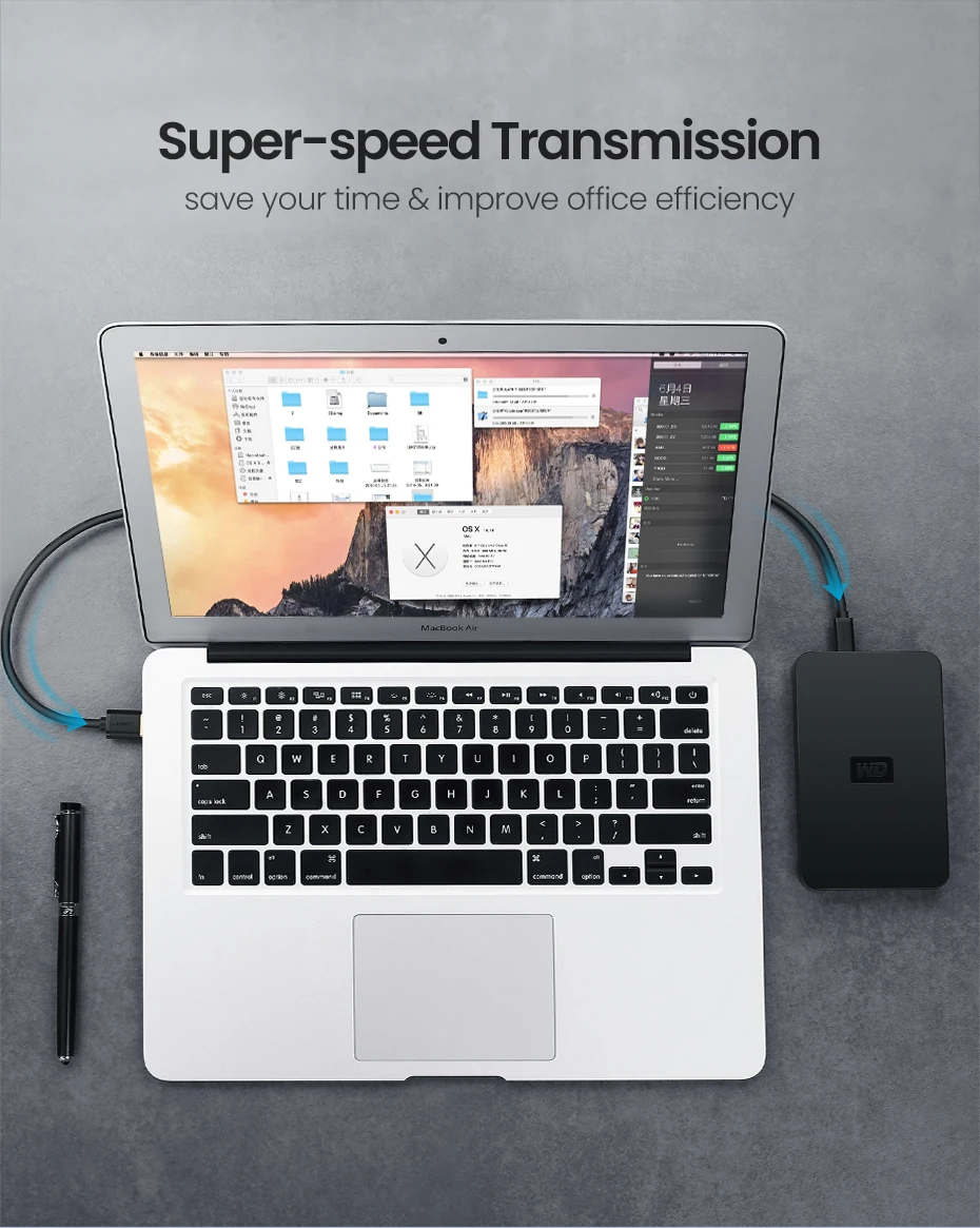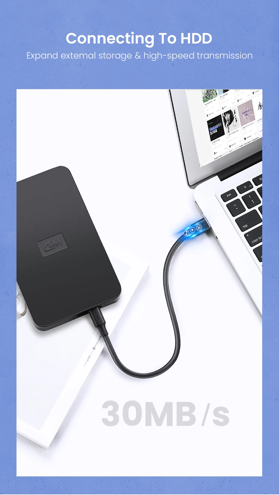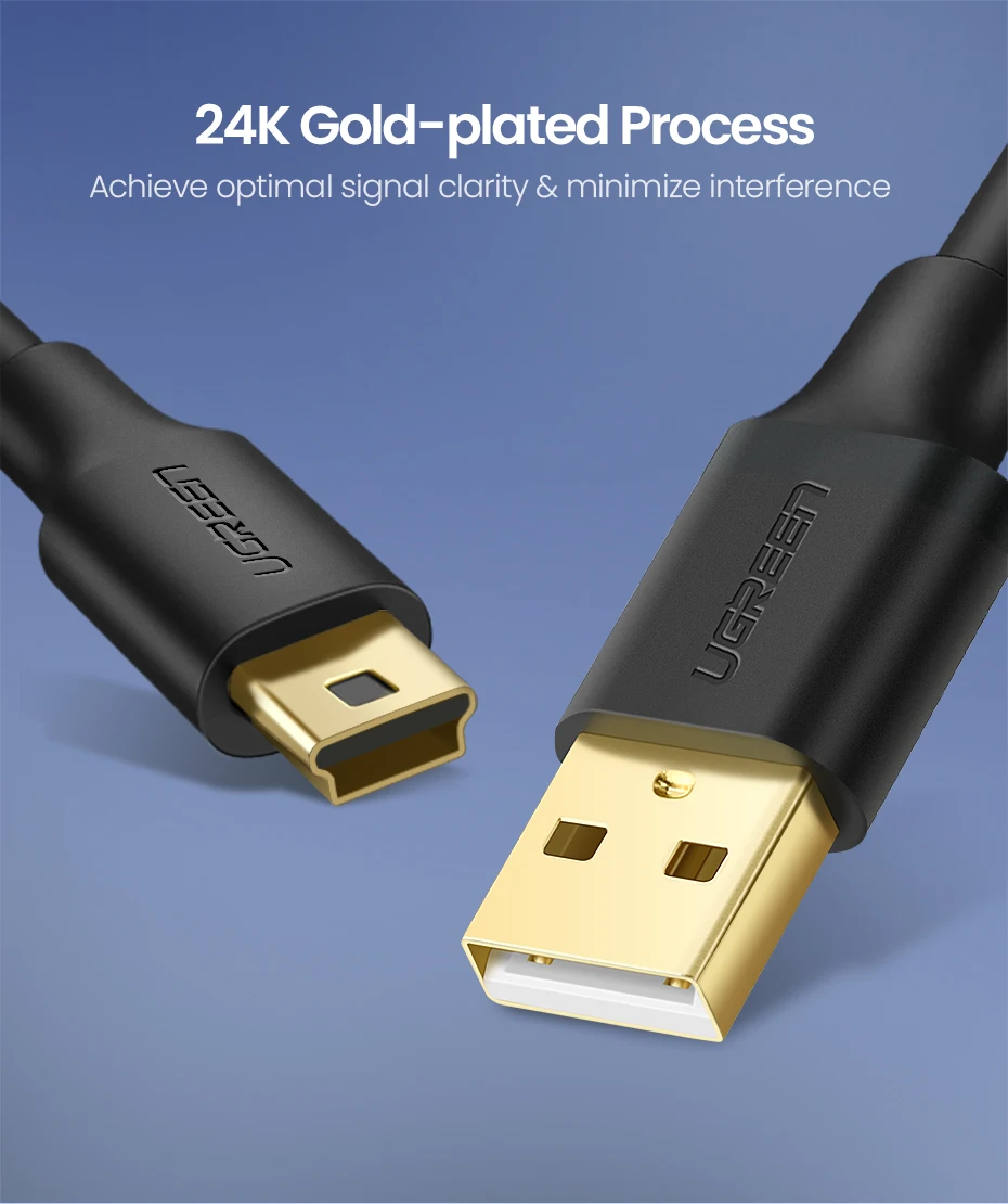 El cable Ugreen USB 2,0 tipo A macho a Mini de 5 pines cuenta con un conector USB tipo A estándar en un extremo y un conector Mini tipo B en el otro. Puedes enchufar el conector tipo A en tu ordenador y luego enchufar el conector Mini tipo B en un dispositivo con un puerto Mini tipo B. Dispositivos como teléfonos móviles, reproductores de MP3, tabletas, cámaras digitales y videocámaras digitales a menudo tienen puertos Mini tipo B.