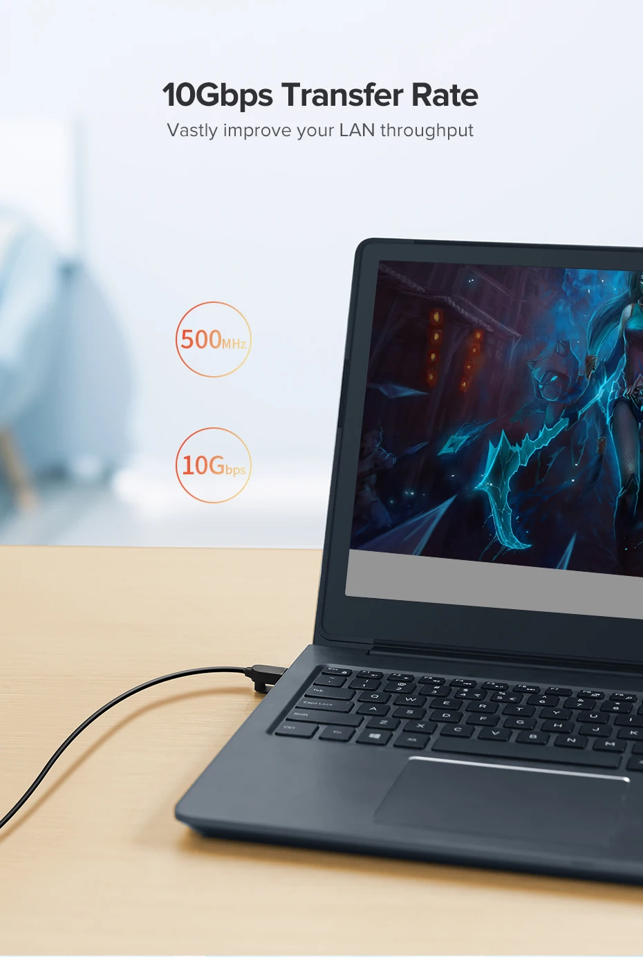 Cable Ethernet delgado Ultrf Cat 6A 10Gbps