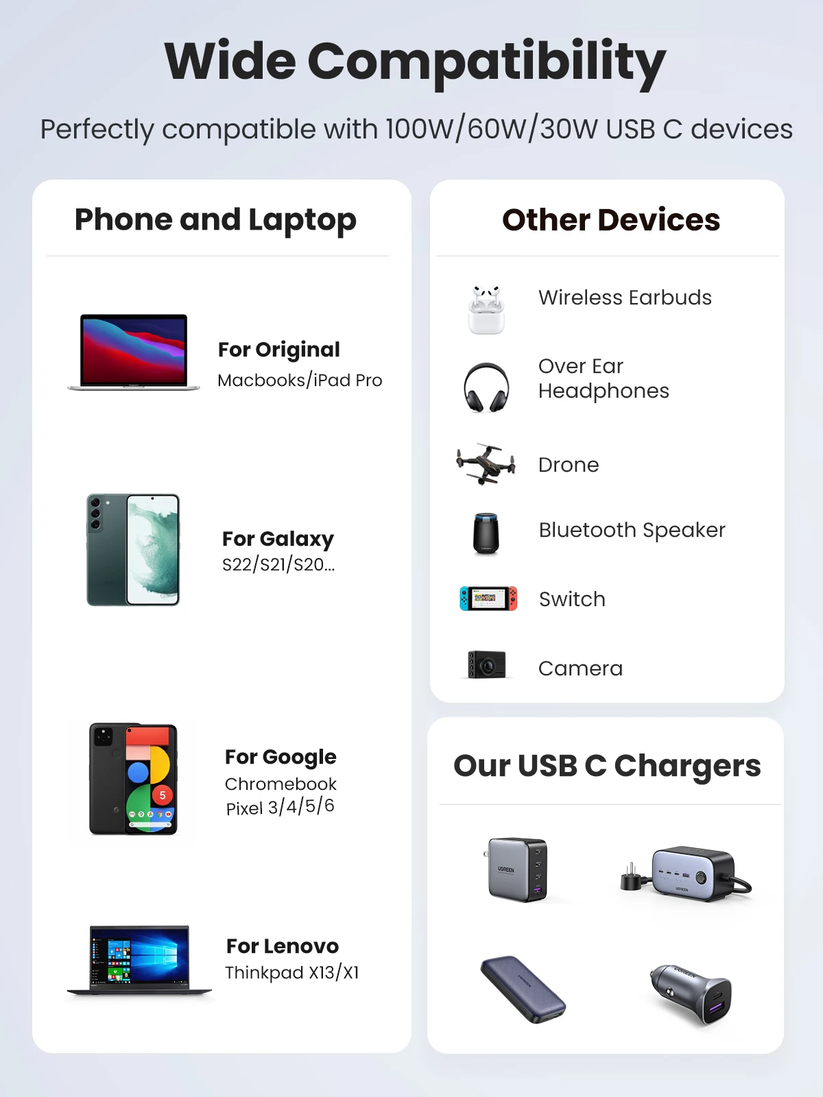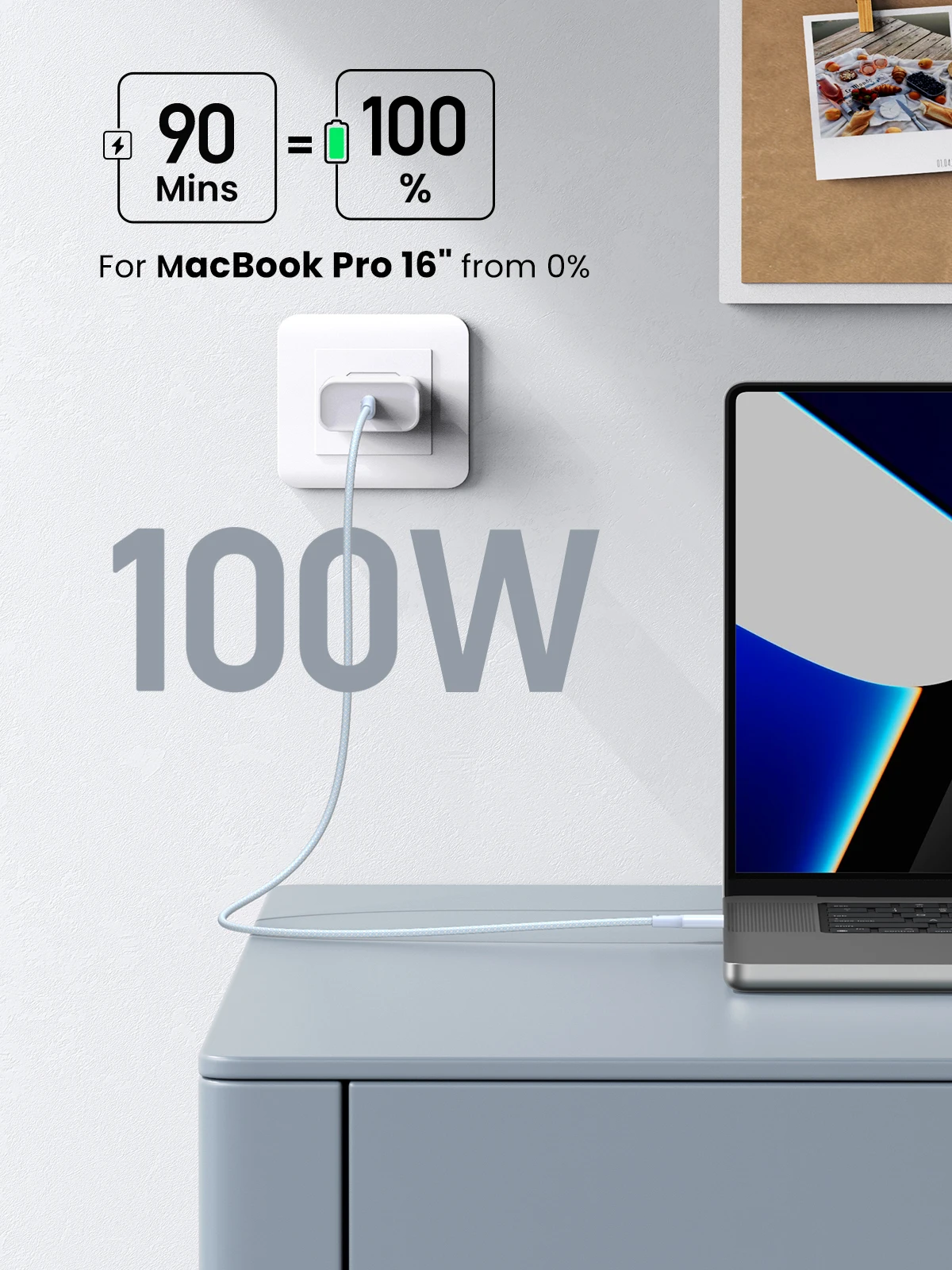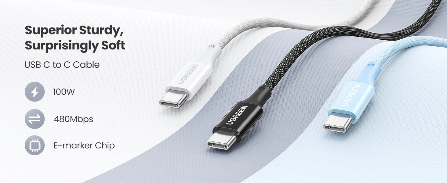 Comprar UGREEN-Cable USB de 100W para MacBook, Samsung S21, Chip e-marker 5A, de silicona azul, de carga rápida, Cable tipo C para teléfono móvil