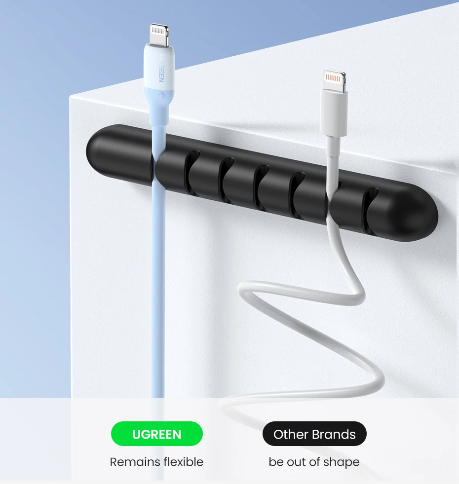 Acortar a cualquier tamaño que desee con la brida de silicona para cables, que puede mantener el cable bien enrollado