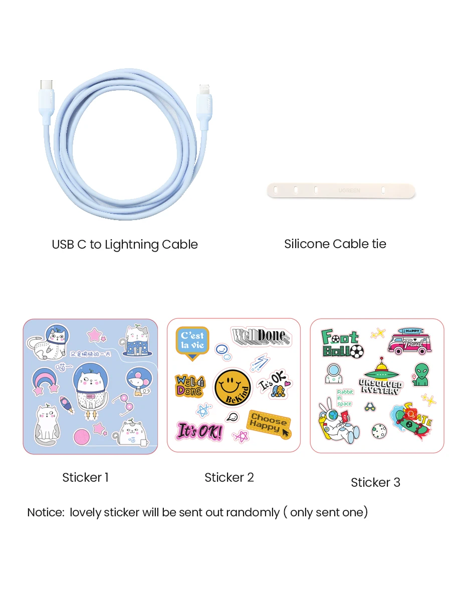 En el paquete: cable Lightning, cable de silicona, pegatina encantadora.