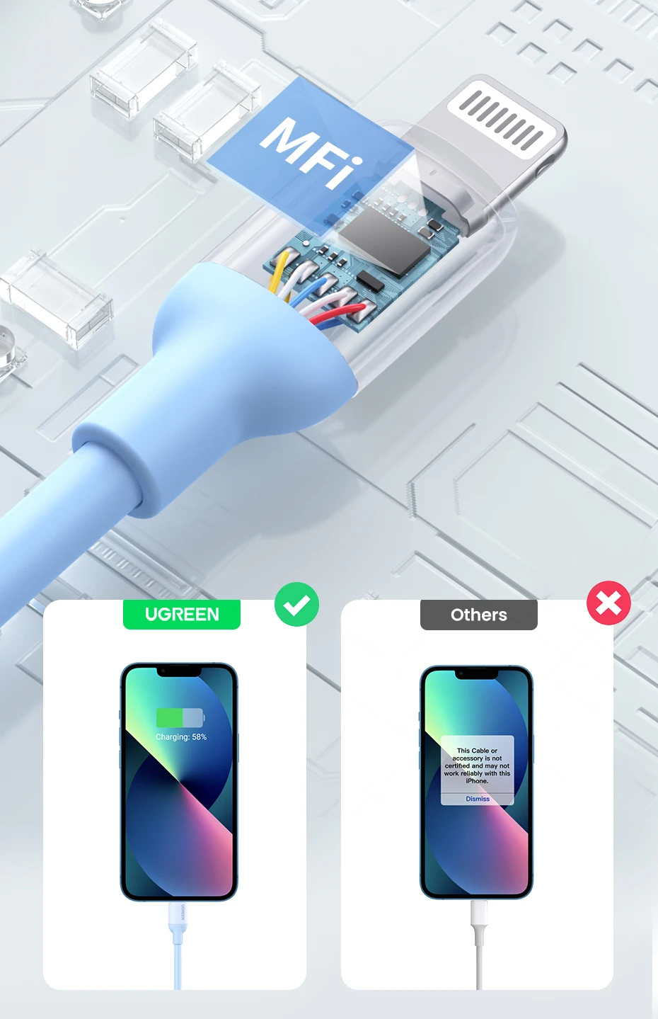 Cable Ugreen MFi✔ | Cable no MFi✖ | |