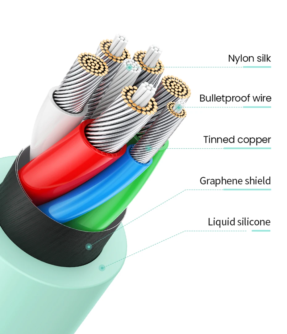 Ugreen eligió cobre Premium, refugio de nailon puro, carcasa de goma y red de protección de forma selectiva
