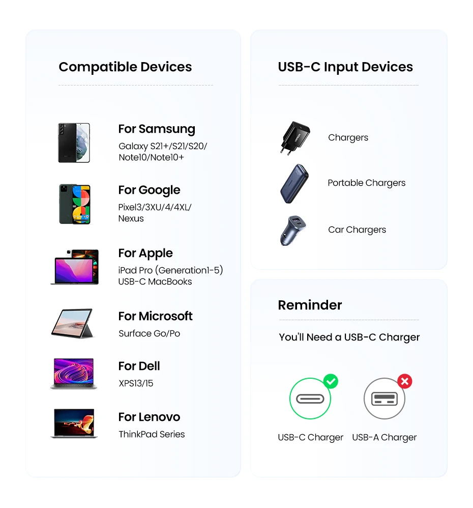 Admite carga rápida Huawei/Xiaomi/Samsung