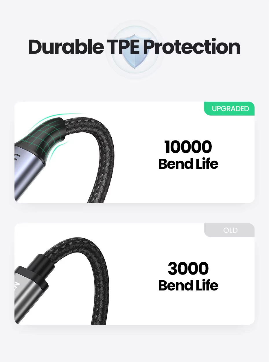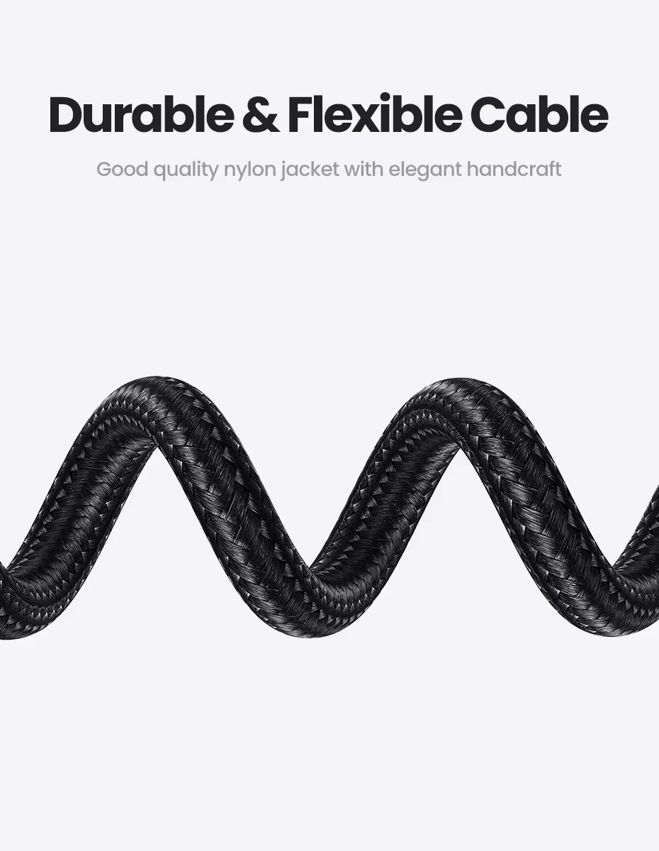 Cable duradero y flexibleUso de envoltura tejida de nailon de alta calidad, buena dureza, almacenamiento flexible y más resistencia.