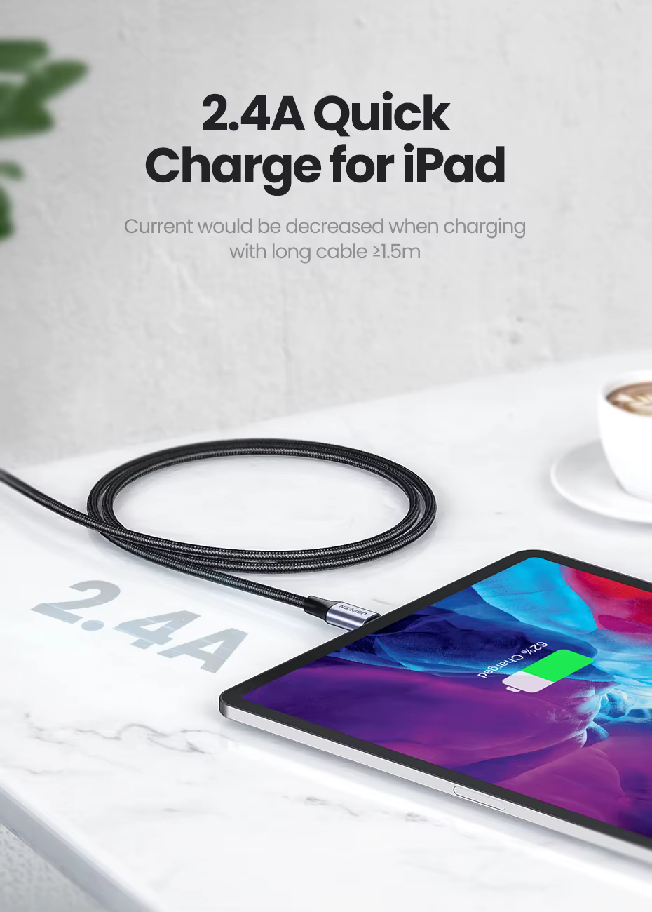 Carga más rápida para iPhoneLa longitud completa admite alta corriente de 2,4 A