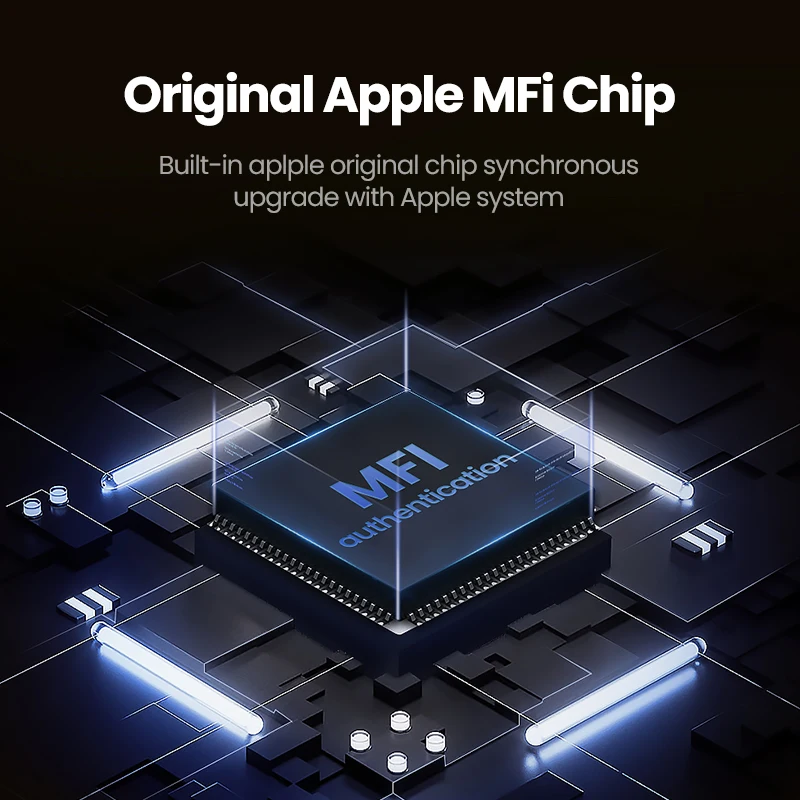 Chip MFi original de AppleLa certificación oficial de Apple incorporada del mismo chip, sincronizada con la actualización del sistema iOS