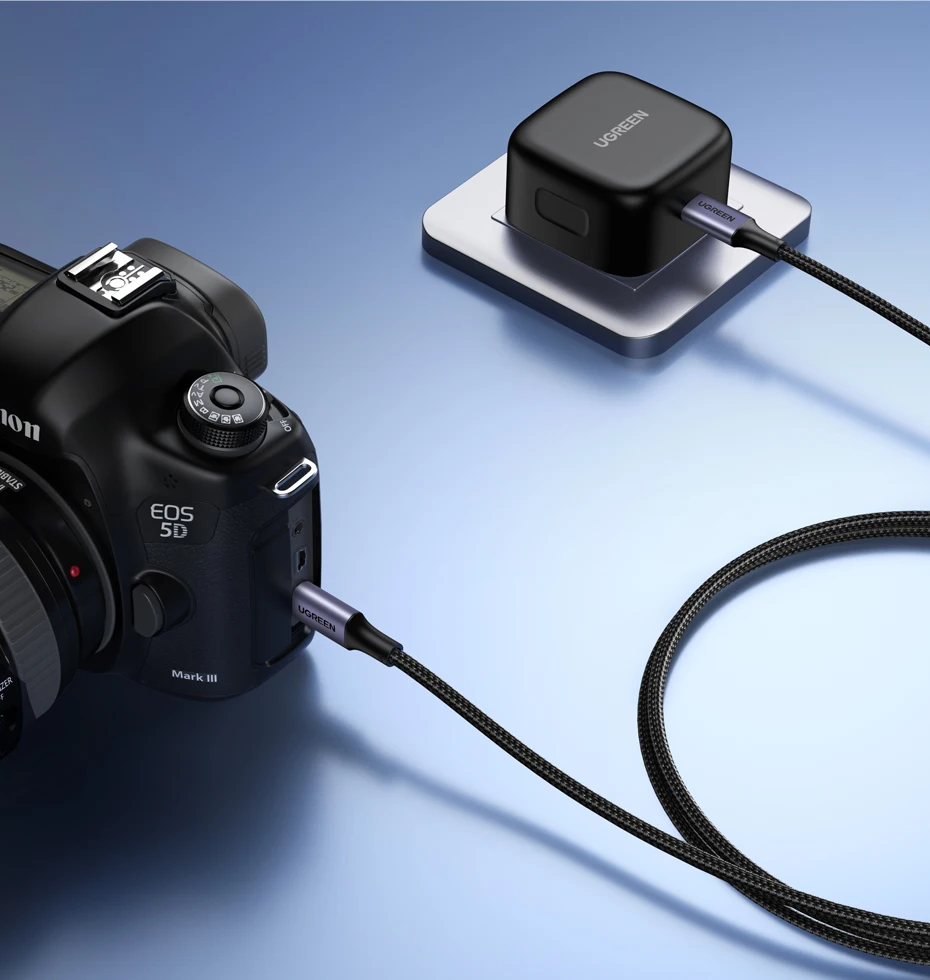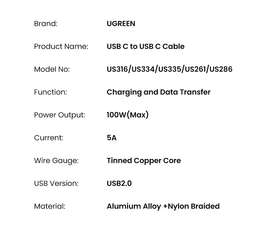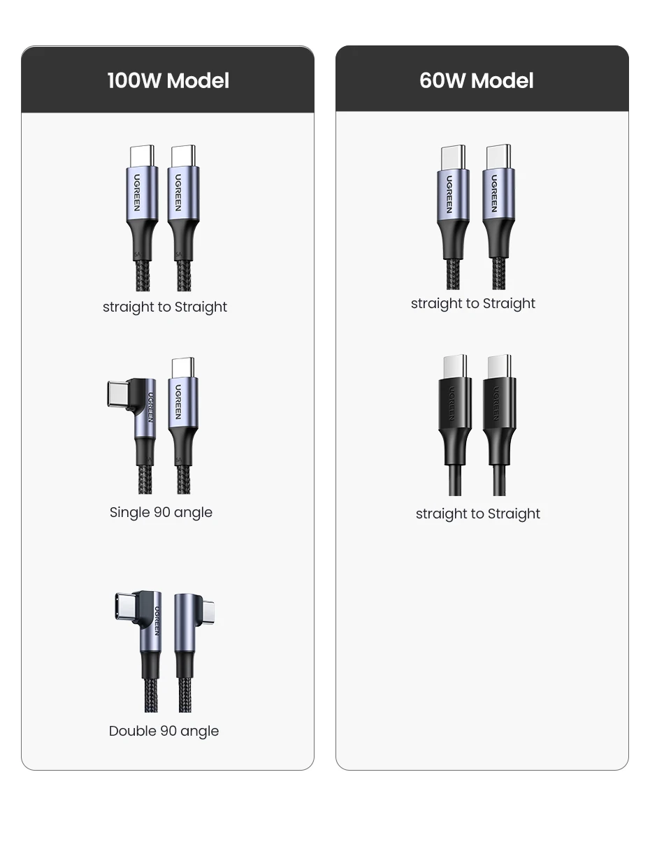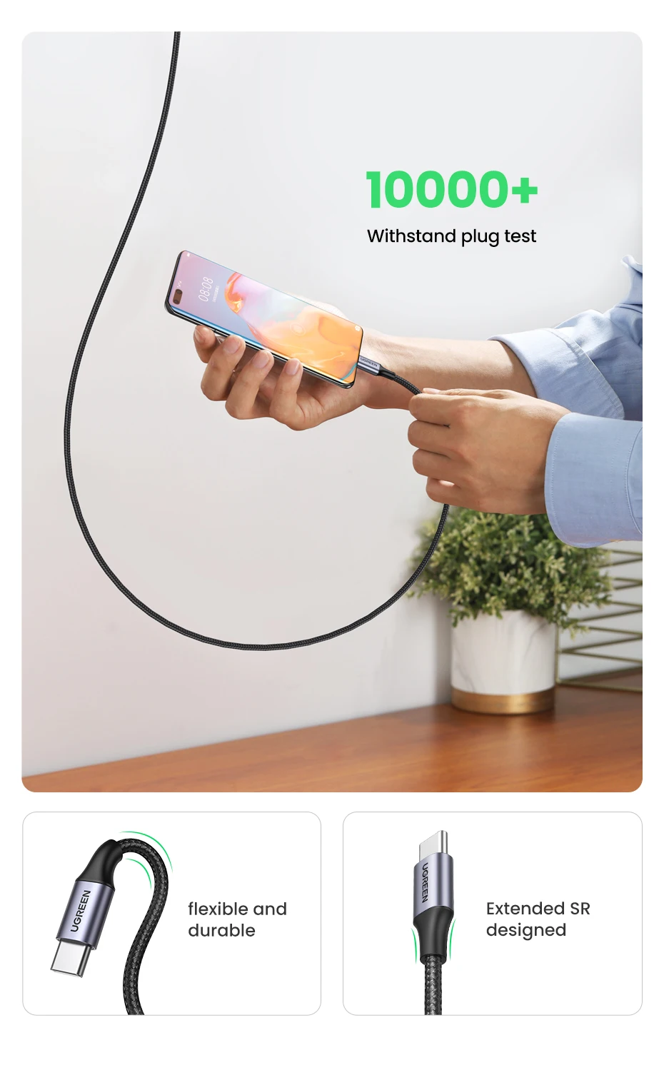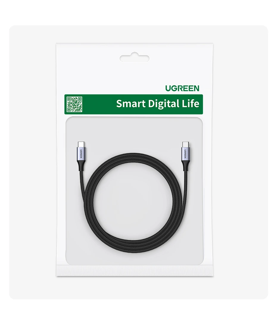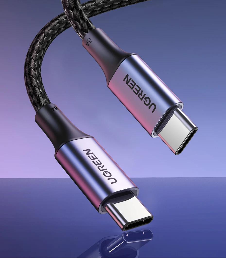 Cable UGREEN USB C a USB C integrado en un chip inteligente E-marker, que garantiza una carga segura de hasta 100 W (20 V 5 A) de salida de potencia para sus computadoras portátiles/teléfonos móviles/tabletas a máxima velocidad.