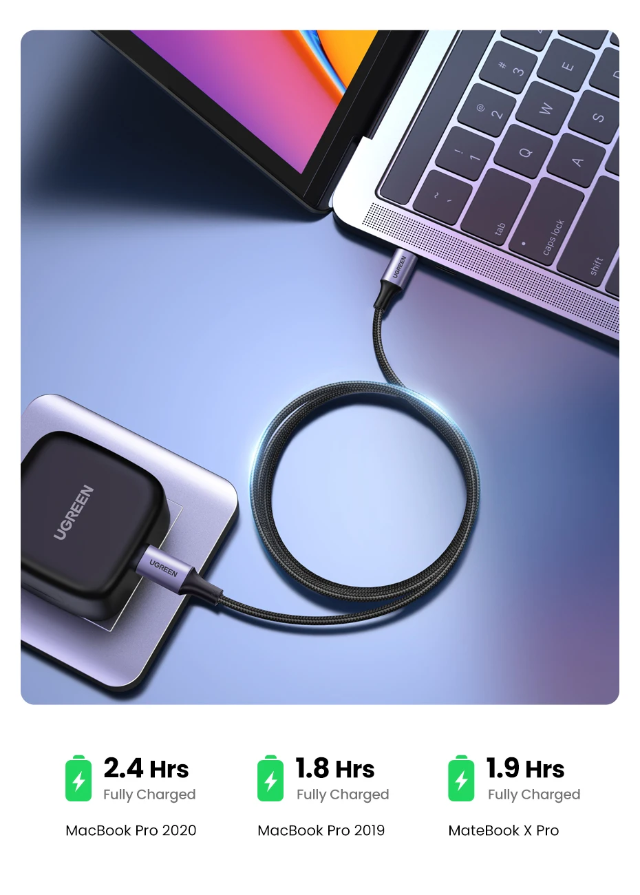 Equipado con el cargador original de sus dispositivos, disfrutará de la carga de alta velocidad, como la carga rápida de MacBook Pro 2020 al 39% en 30 minutos, 65 minutos de carga completa Samsung Galaxy S20 Ultra 5G