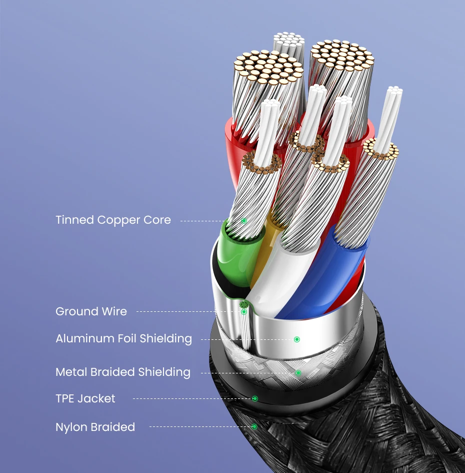 Protección multiblindajeEl núcleo de cobre estañado atrevido de 30/18 AWG garantiza una carga segura