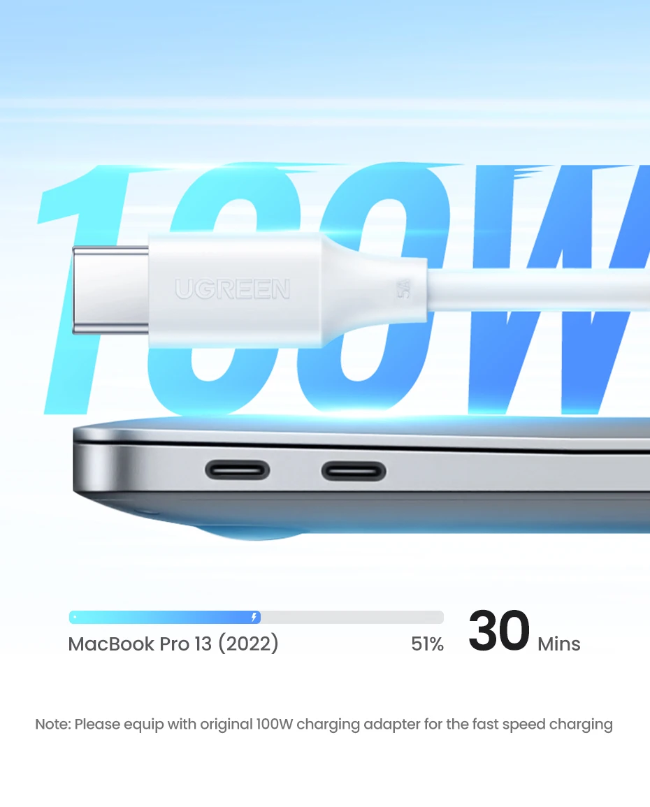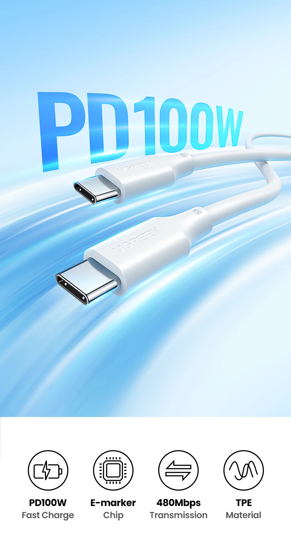 Comprar UGREEN-Cable USB tipo C de 100W para MacBook Pro, Samsung Galaxy A52s, Cable de carga rápida 5A, Chip e-marker integrado, Cable USB tipo C