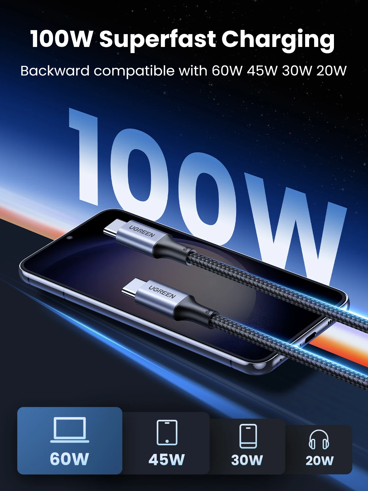 Comprar UGREEN-Cable USB tipo C de 100W para Samsung Galaxy S21, Cable de carga rápida 5A para Macbook, compatible con carga rápida 4,0