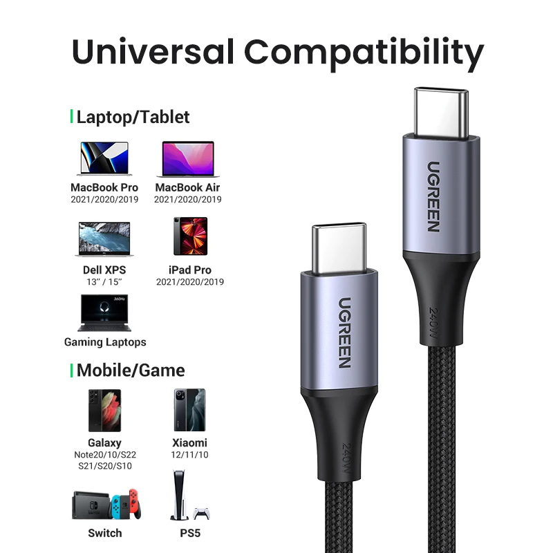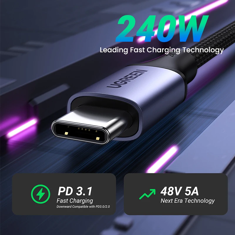 Comprar UGREEN Cable USB tipo C de 240W Línea de alimentación PD3.1 para PS5 Nintendo Switch Galaxy S22 MacBook Cable de carga rápida 48V5A USB C