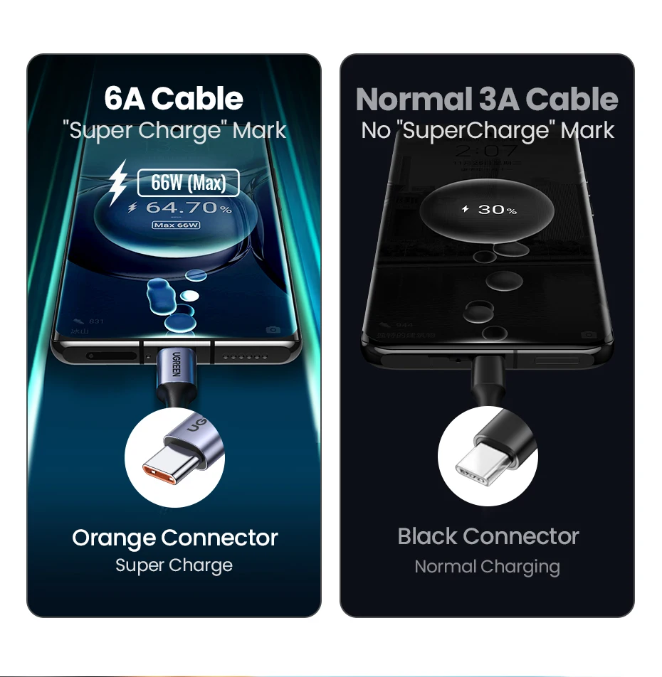Comprar UGREEN-Cable USB tipo C de 6A y 100W para móvil, cargador de coche telescópico de carga rápida para Huawei Honor y Xiaomi 100W/66W