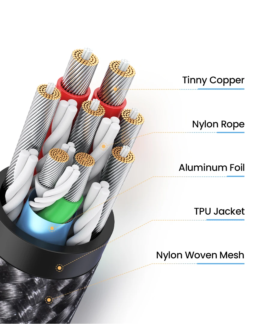 Muy buen articulo, compatible con la carga super rápida de Huawei(66w), el cable es semi rígido