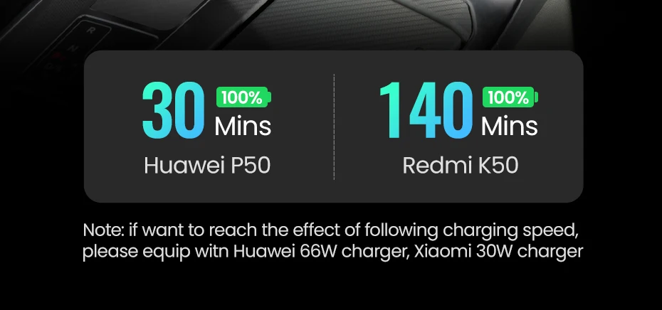 Equipar con cargador Huawei 66W, cargador Xiaomi 30W